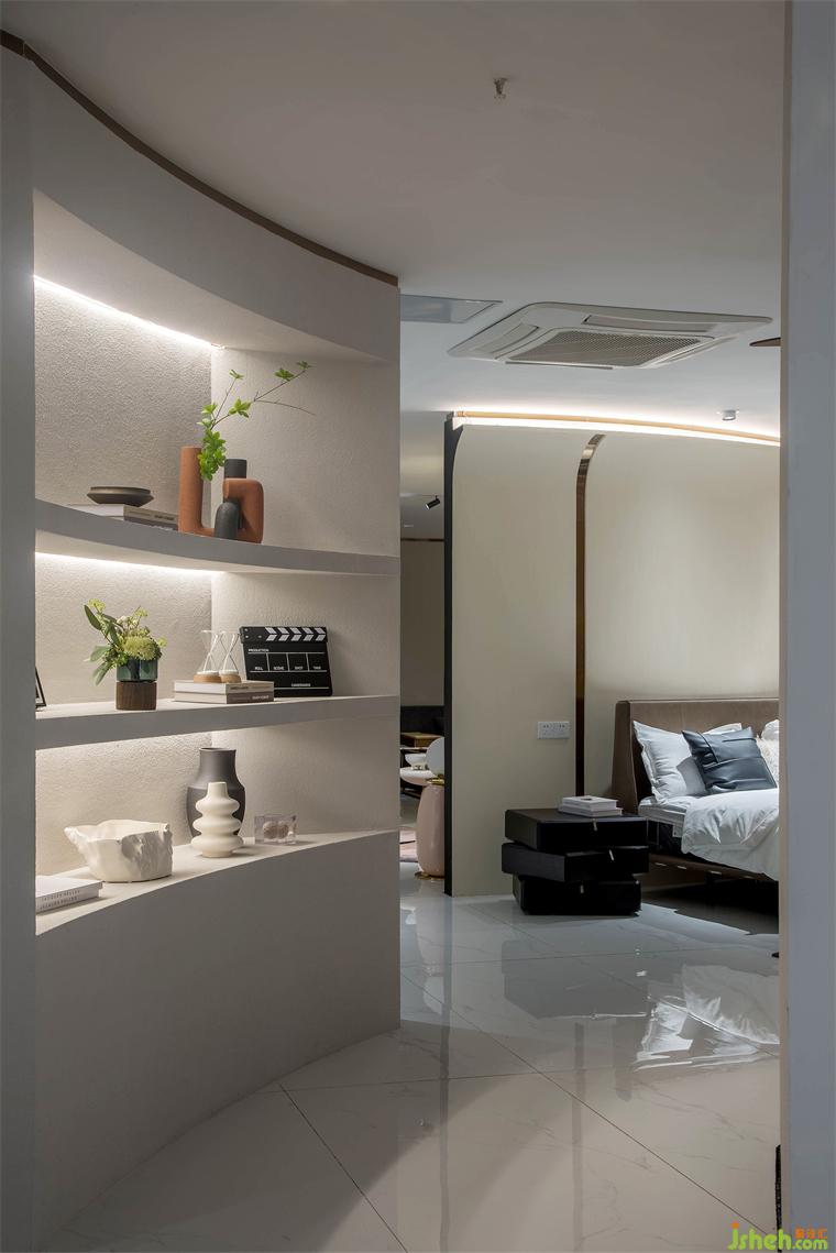 设计师在创作过程中,始终着重将艺术、空间与产品互融,艺术注入空间,有了更加鲜活的气息。承接前行步伐,罗马式立柱向观者表露出大牌极奢的空间定位,从中分裂的墙体产生隔而未断的视觉效果,装修设计步履移动间,空间中的一切相互借景,散发充满流动性的艺术美感,空间内部结构的丰富性得以自然呈现。