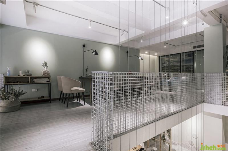 整体空间的风格基于LOFT之上,大量运用原木和钢网来构造空间,总体基调以和白色乳胶漆作为墙面背景衬托原木的质感。