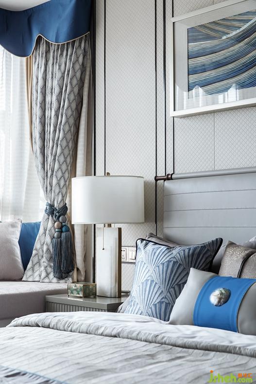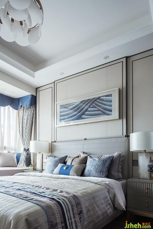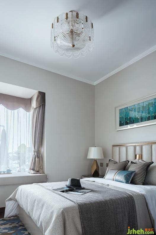 长辈房的设计选用浅亚麻色、湖蓝相对柔和的色调,契合老人家舒惬享老的生活心态。舒适亲肤的床品、精致的艺术饰件、甘甜芬芳的插花,营造亲和淳朴、安享自身的生活氛围。