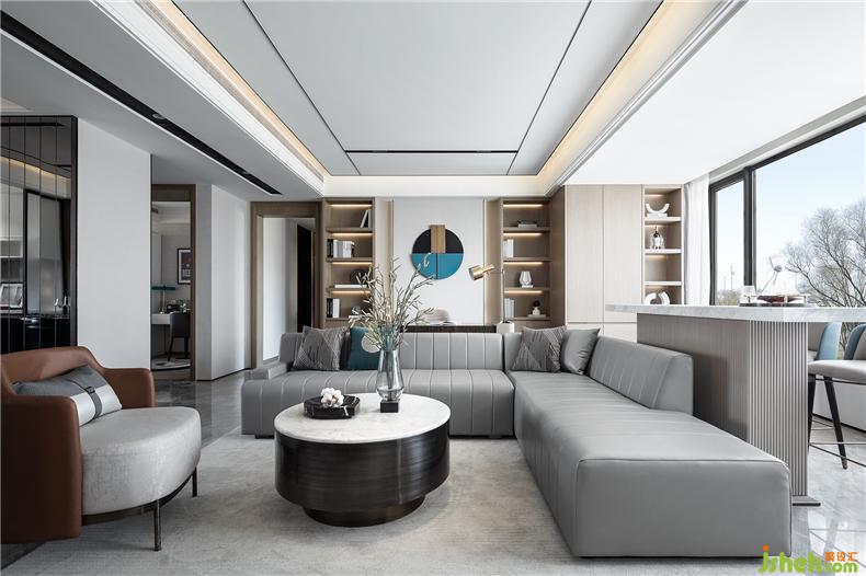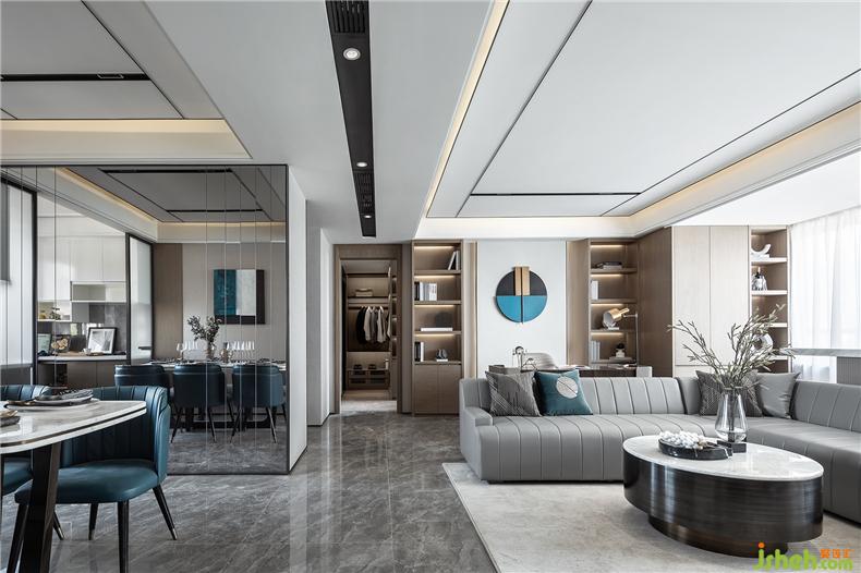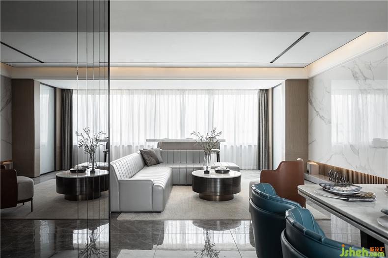 在空间氛围上,由于整体采用开放式布局,极大地增强了室内通透感。样板房设计玻璃窗将光线引入室内,再辅以大面积的白色墙体,令采光效果达到最佳。