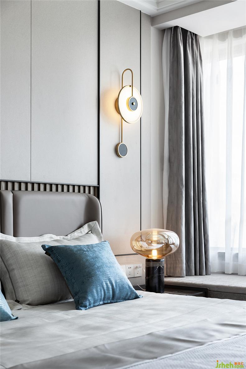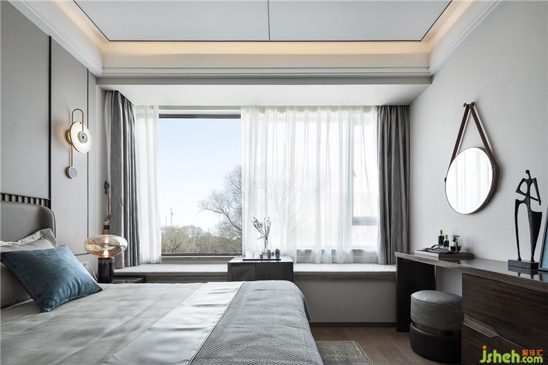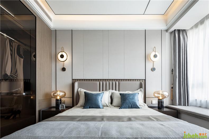 次卧延续了整体的现代设计语汇,温暖而又舒适。严谨与克制,在相互对抗中,以协调的艺术语言挖掘冲突的均衡,平衡空间场域,形成了一番新的秩序美感。