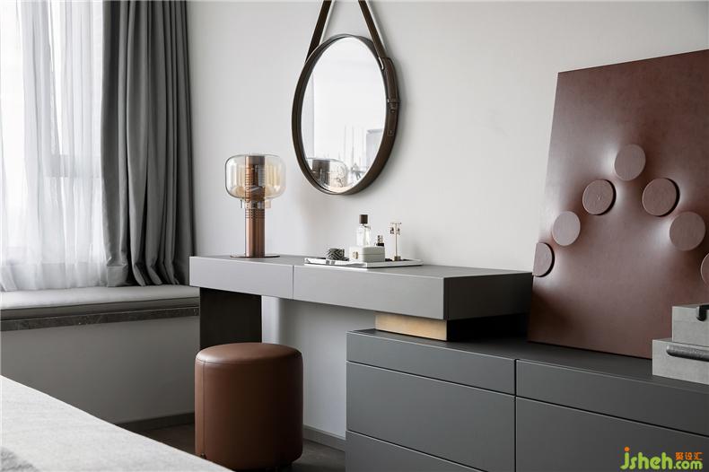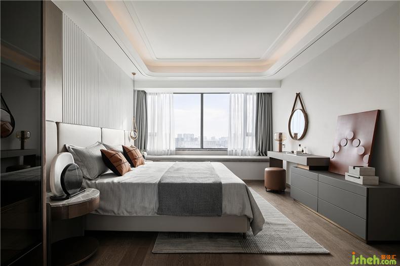 老人房采用了端正稳健的配色,大地色系中点缀着麻灰布艺,样板房设计结合精巧的陈设,低调典雅。精美的皮革制品随处可见,在质感和色彩上皆能遥相呼应,既藏住了流行,又透着复古的时尚。