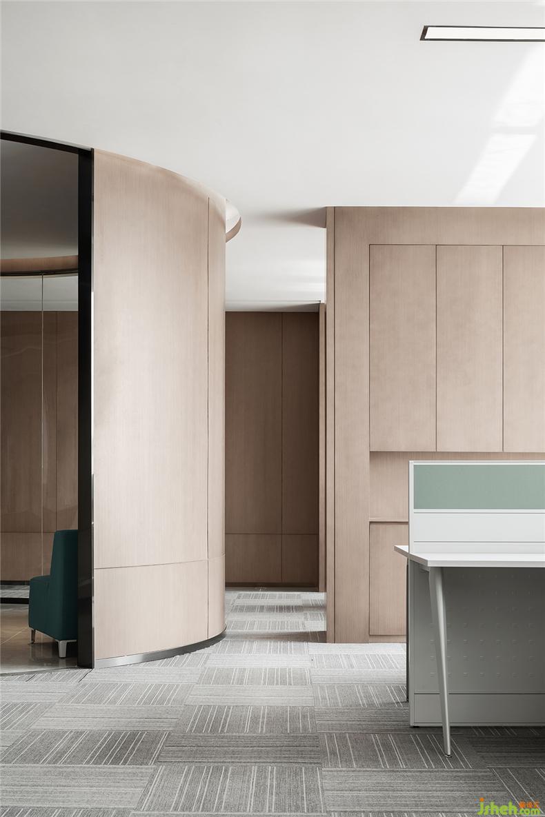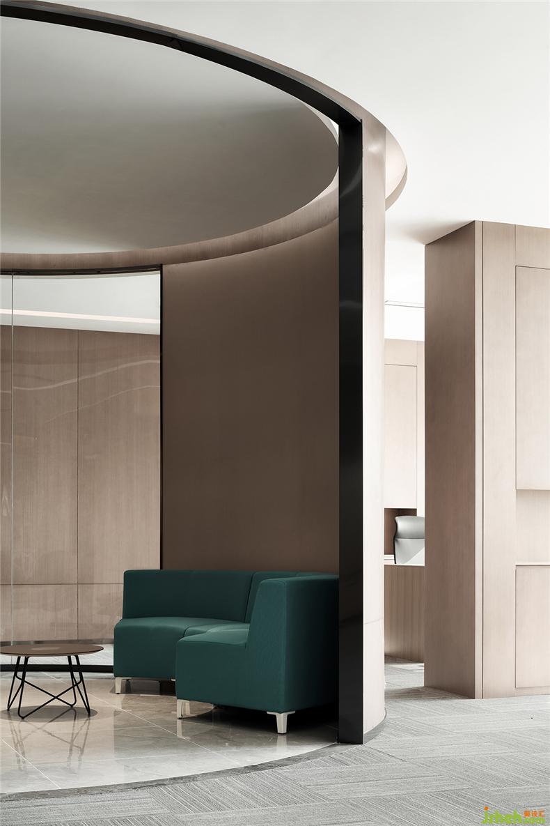 空间呈现一种至简的流畅,弧形天花在艺术的塑形下,南宁办公室设计保持着空间的独立却又有开放的视觉。大地色的空间氛围,将整个空间串联,让室内更为安静。