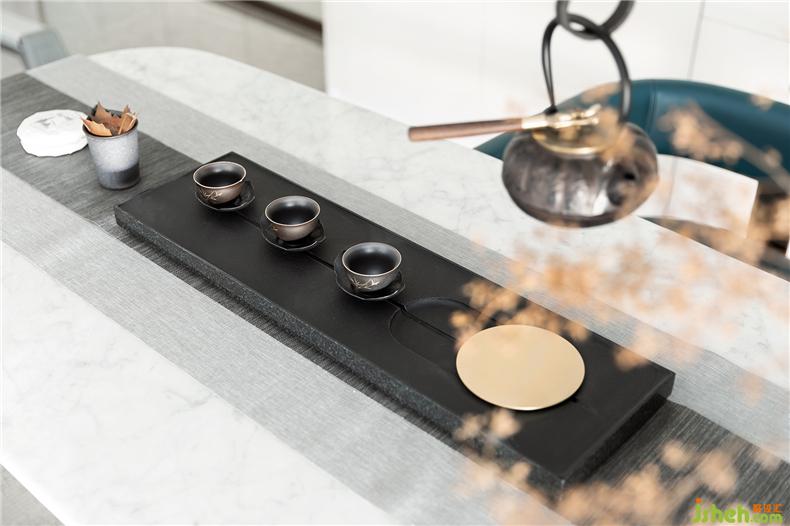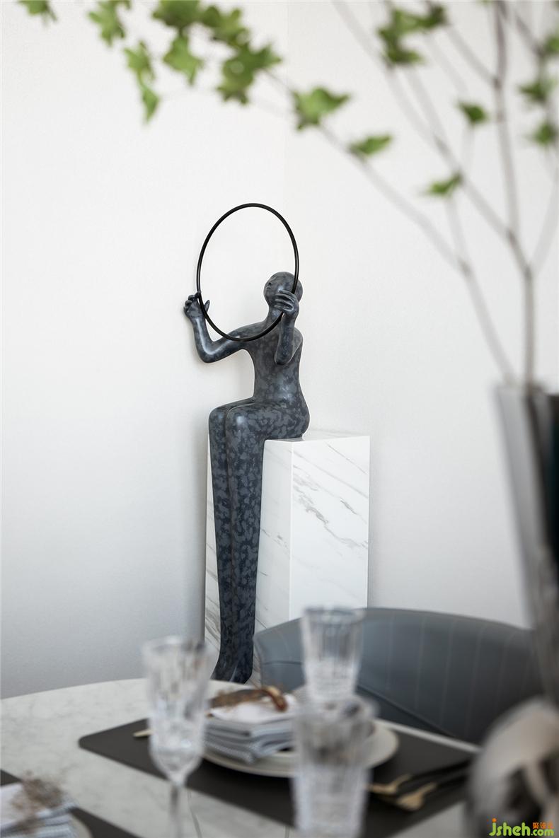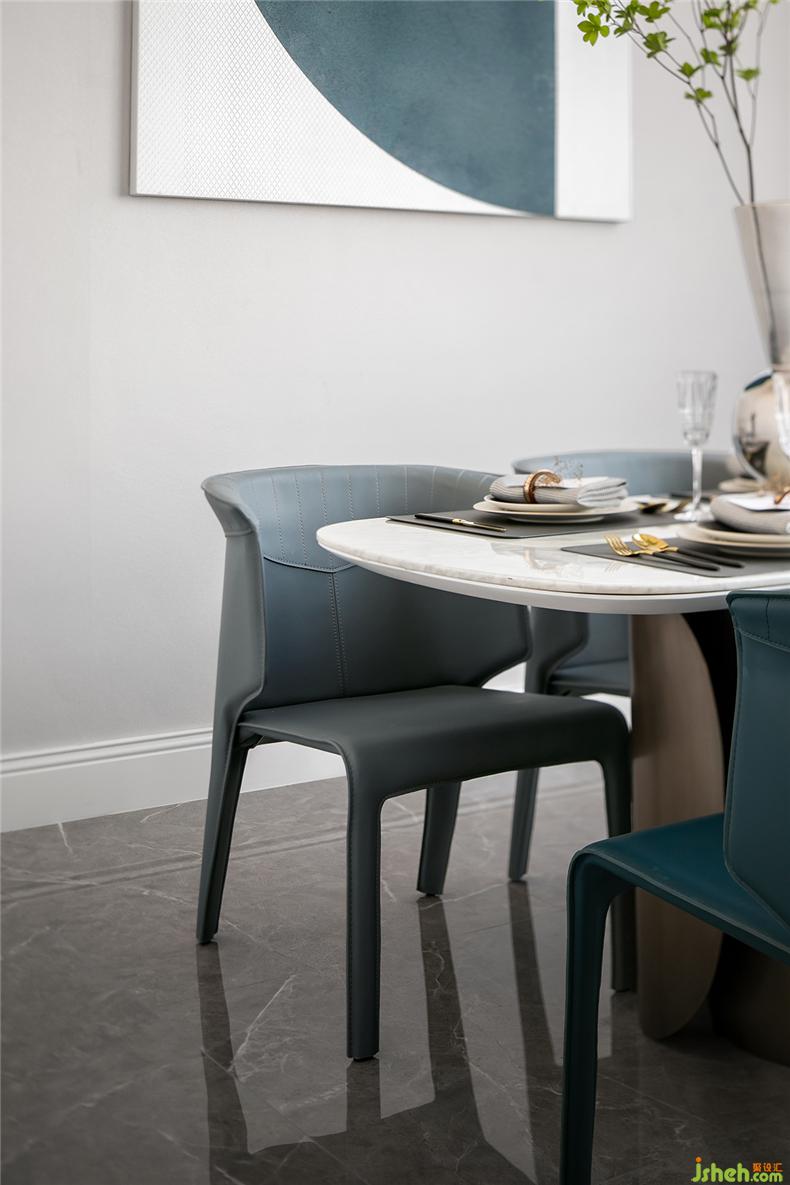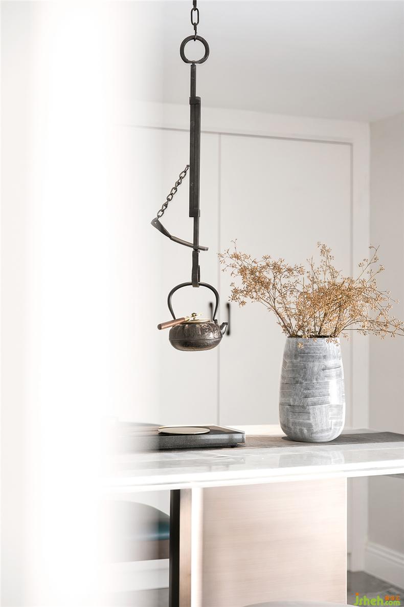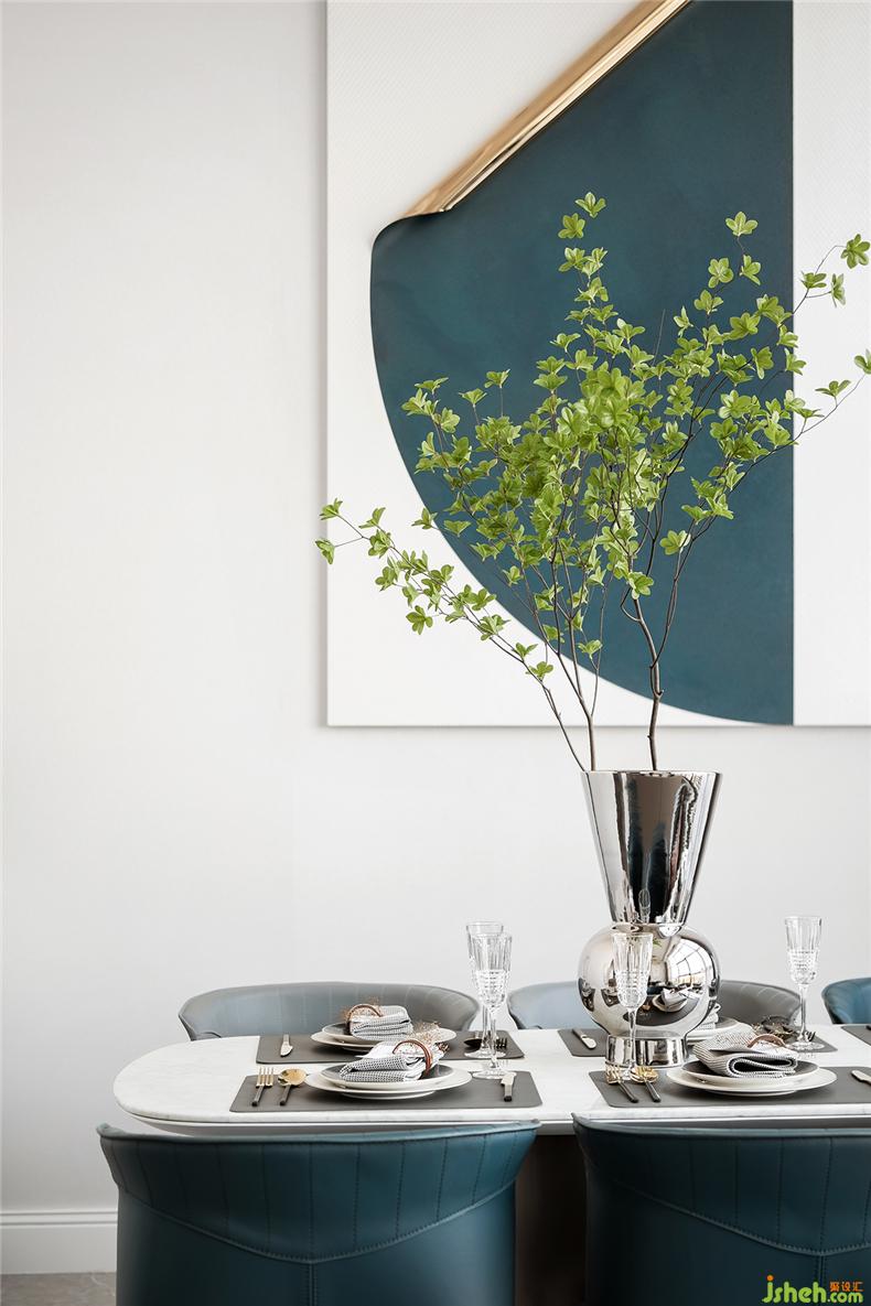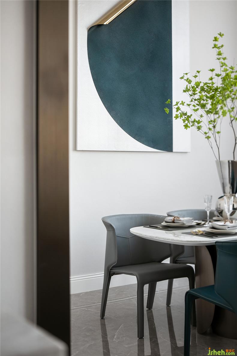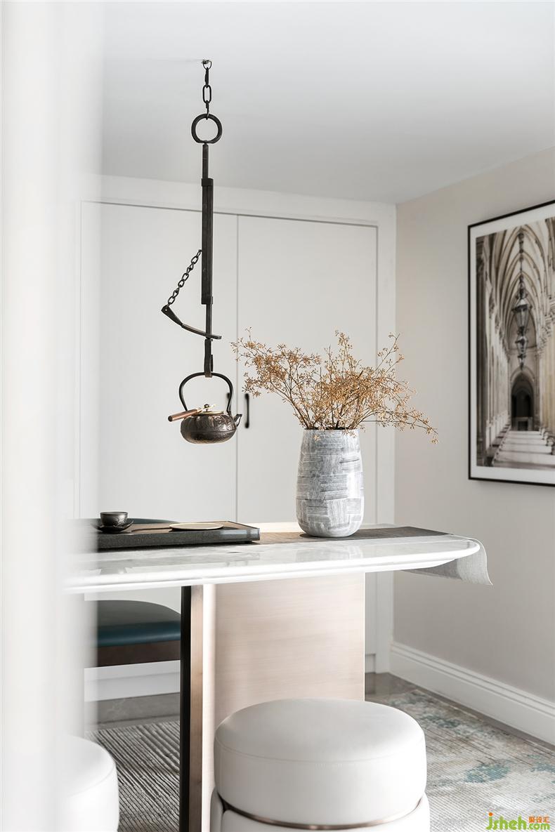 客餐厅为一体的挑高横厅,光感灵动,隽永舒怡。陈设细节以艺术手法渲染出独立自由的生活语境,情韵诗意,表达出一种在繁华中回归宁静的意味,更是主人生活状态、气度胸怀的呈现。