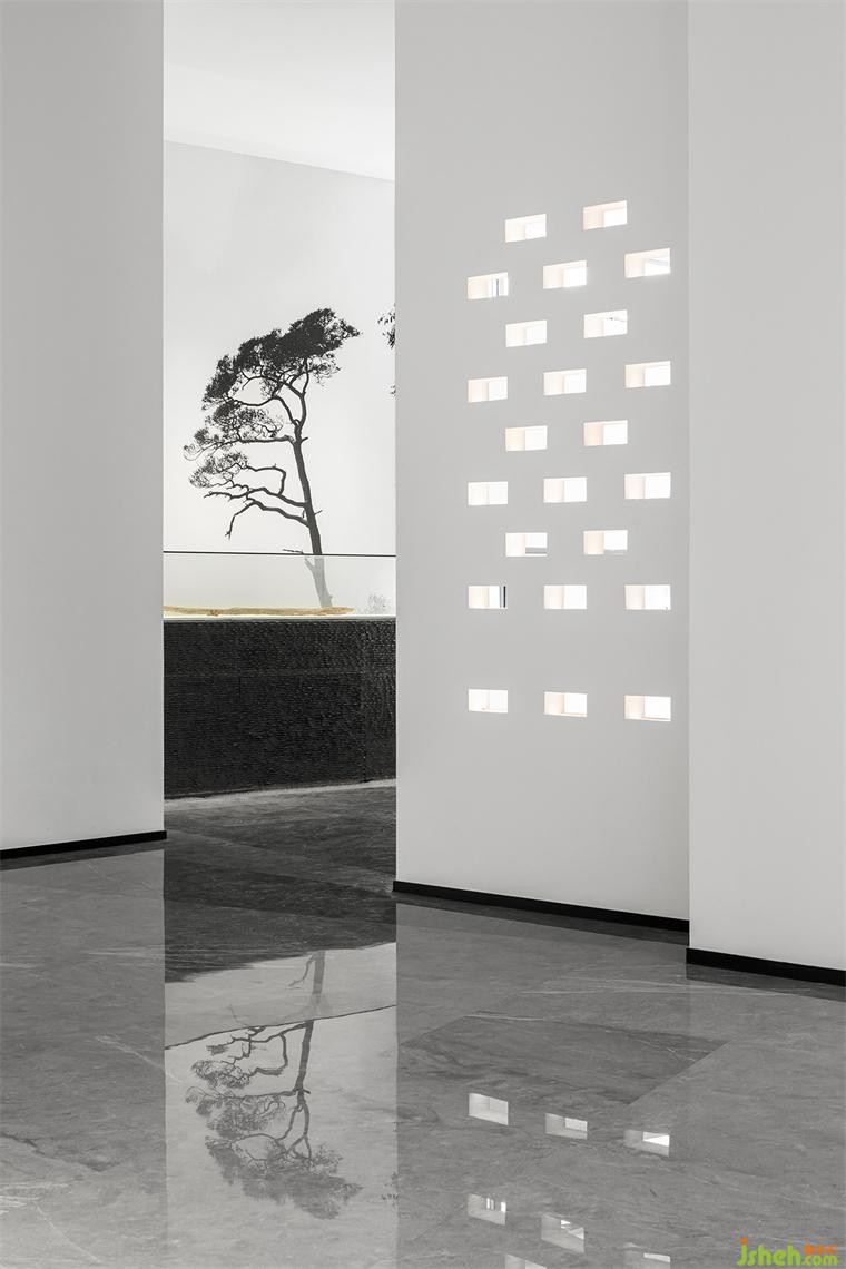 设计再以黑灰两色为平衡,对比中有提升,博物馆设计亦有克制。温润的大理石材质在日光下闪烁出融暖光泽,看似随意的纹路为空间添增水墨质感,映衬木质肌理,沉香如大自然的鬼斧神工,以自在神态,抚慰着这个禅意世界。