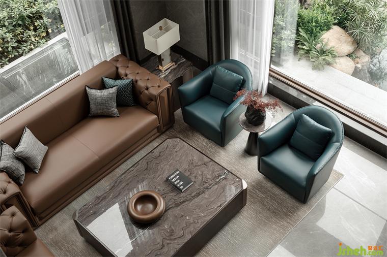 不囿于某种特定风格,花园别墅装修设计以现代之形架构空间的非凡格调,生活品质在席坐之间升华。沉稳如墨绿,温暖如深褐。沙发、茶几恰到好处的弧度圆润流畅,搭配棱角正方的雅白地灯。