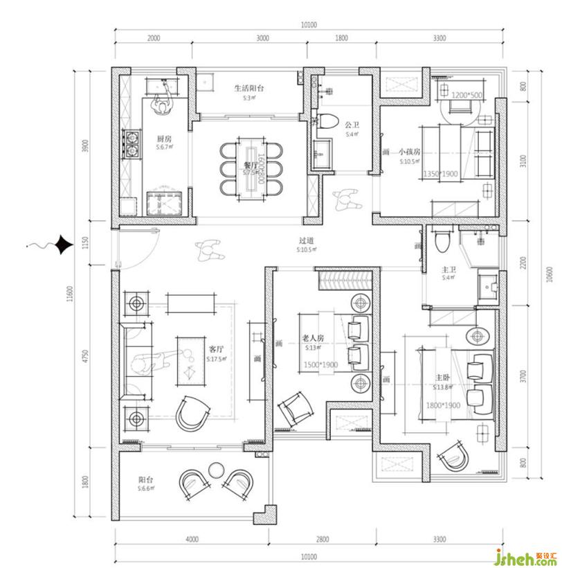老人房更加考虑其舒适性,因此我们取消了跳跃的橙色,让整个空间整洁,统一。