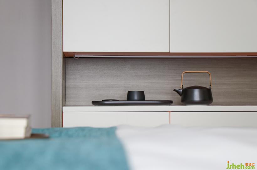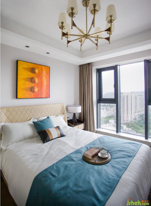 现代感十足的床头灯饰,神秘有趣的挂画,是空间主人对当下生活及自我的一种解读。