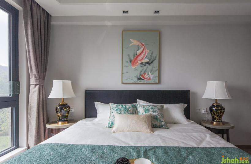 卧室空间一隐喻的表现手法来渲染空灵写意的东方意境,一抹绿意的融入让整日忙碌回到家中的我们得以放松沉重的心情。