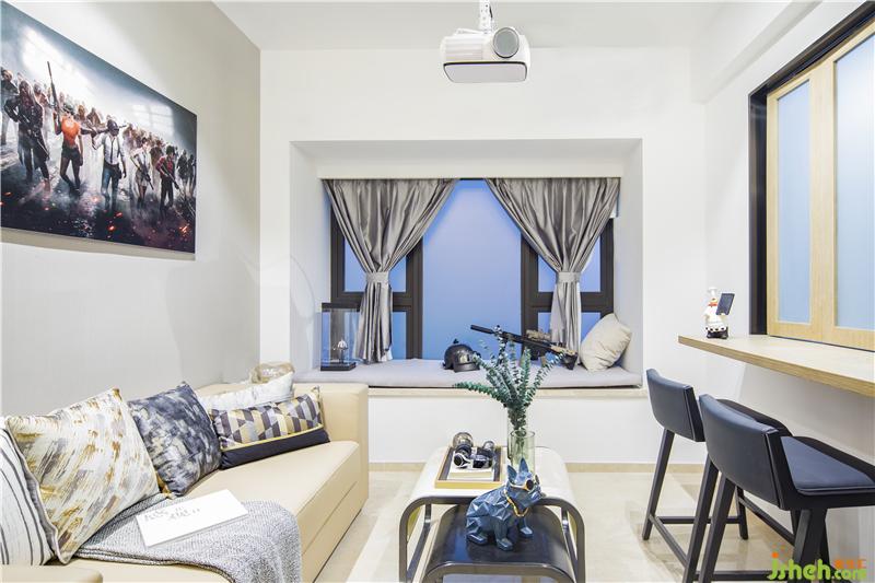 室内增加投影布直观游戏直播配置的吃鸡装配应用于现场吃鸡竞赛增加了互动体验样板房设计