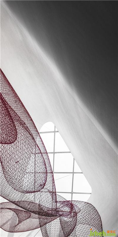 如浪潮般涌来的大型吊饰由上而下飘洒而至,打破空间原本的沉闷布局,阳光不经意间的洒落各个角落,虚实曲折,明暗交替之间丰富了空间的层次,为空间带来更多的生气,室内的光影流动,亦真亦幻。装修设计