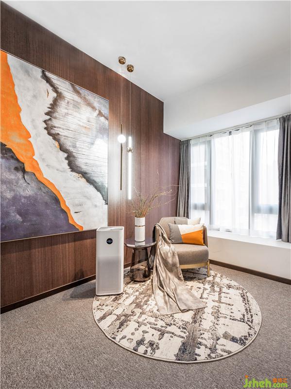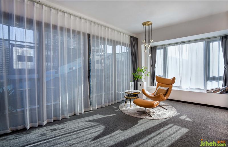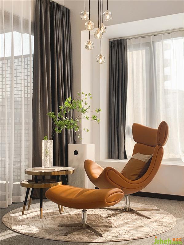 随光潜入室,地面上像云雾一般的灰色与光影产生的化学反应,宛如一道时尚的风景。在一个慵懒的午后,沏一杯咖啡,携一本书籍,窝在舒适的座椅上,享受休憩时光,享受当下生活的惬意。样板房设计