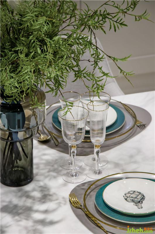 生活的仪式感从餐厅开始,简洁又不失设计感的餐椅,与饶有趣味的餐具组合,时尚精致的圆竖玻璃灯,让就餐体验变得雅致而又有趣味。