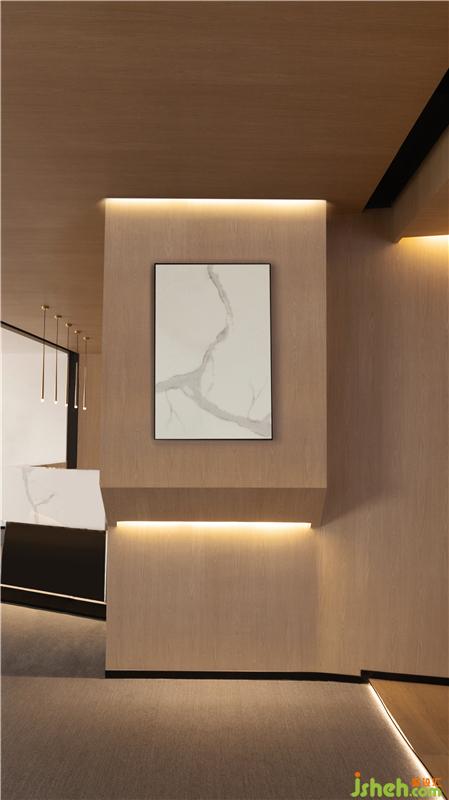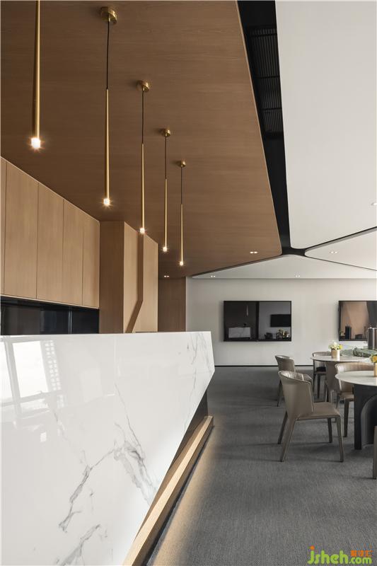 接待大厅没有铺金结彩的夸张视效,而采用大面积的木纹装饰,简约而朴实。