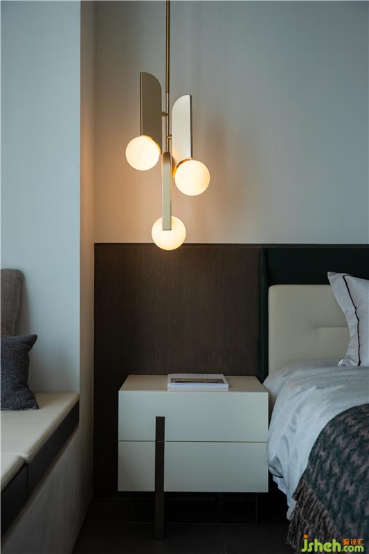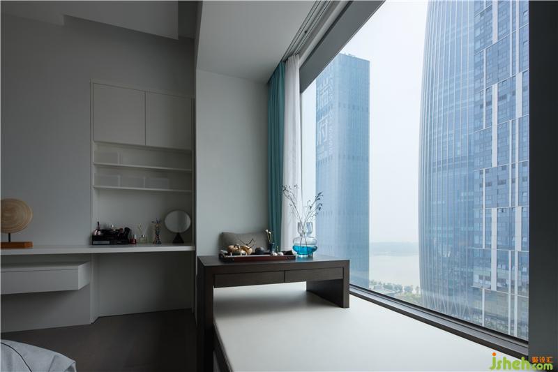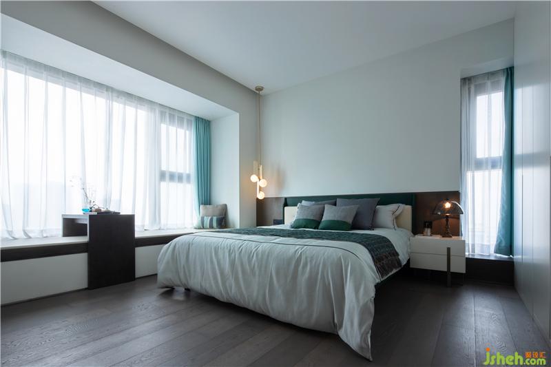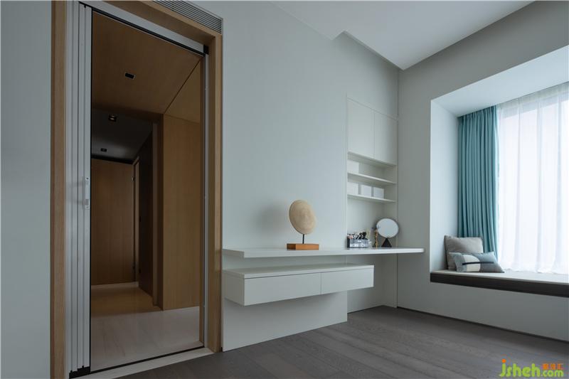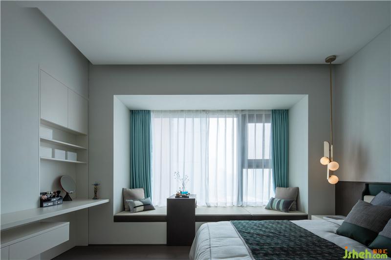豪宅设计师主卧区简洁明快的线条勾勒,同色延续了对客厅元素的运用,营造出了一种自然原生态的环境,同时,飘窗区可移动的木桌,让空间变得更为灵活,为主人提供了一个欣赏风景的地方。
