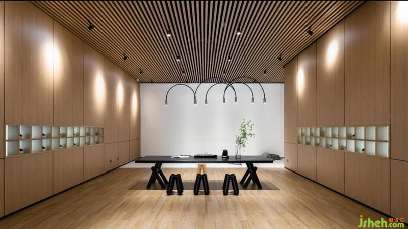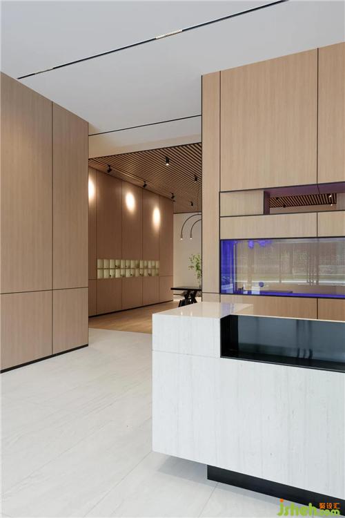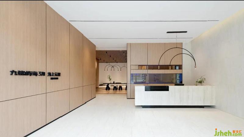 “屿·见”,从主题中的“见”字提取元素,炼化成拱门的形状,融入作品中。好比接待大堂入门便见拱形元素的前台吊灯。