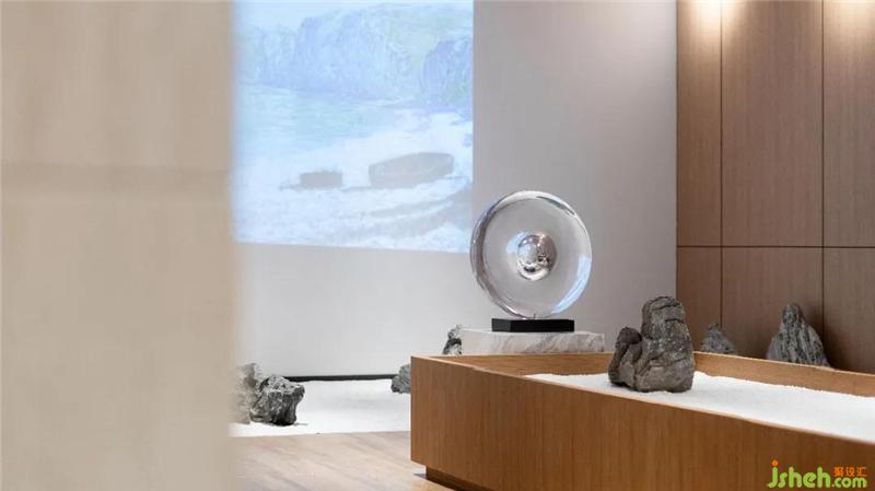 水晶打造而成的圆盘雕塑,以水为灵感,你能通过折射看到户外的海景,亦能在其中看到自己,看到未来。