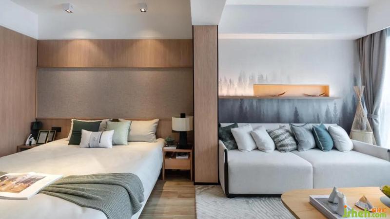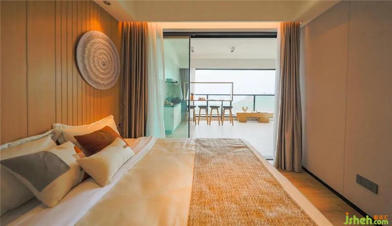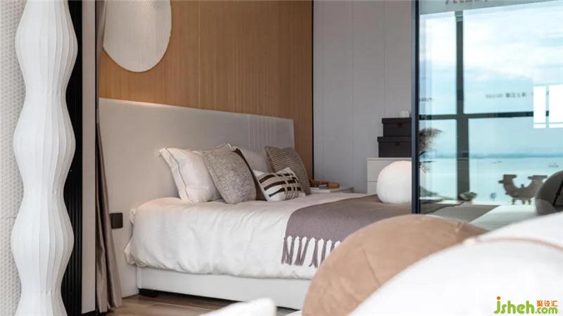 卧室与游戏区之间相连的墙面采用了大块的透光玻璃,让你在规律的海浪拍打声中,温柔的日光里开启美好的一天。实现睁眼就遇见海的理想。