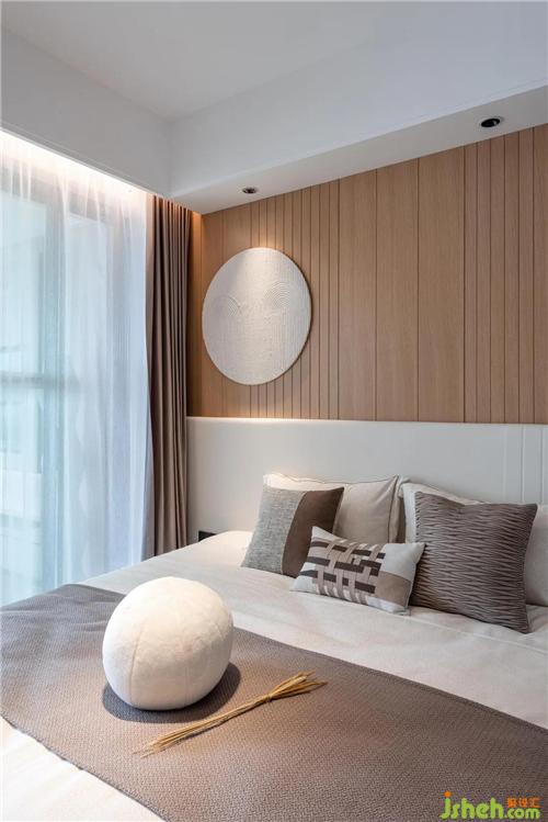 卧室的空间提取了沙滩、土、岩石中的米色和咖色,搭配挂在墙上的立体海沙艺术装饰画,加强视觉,让人心中盛满温柔曼妙的感官。