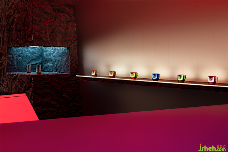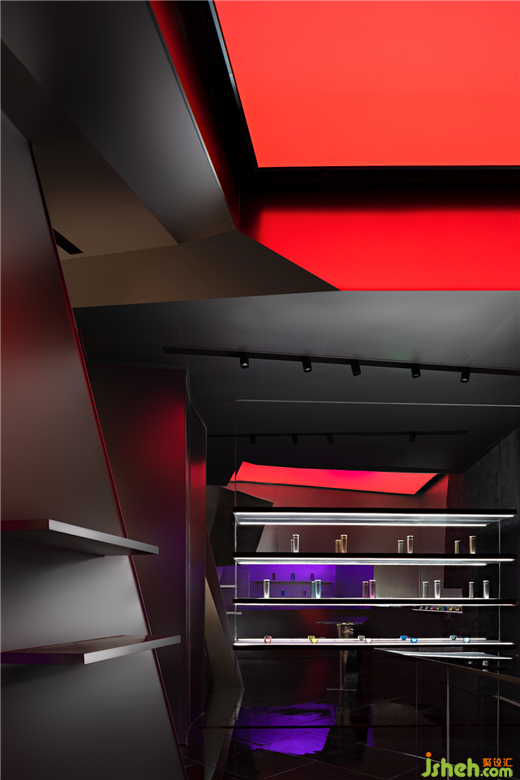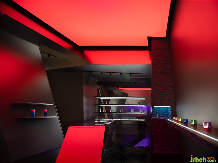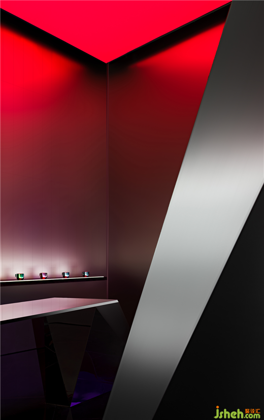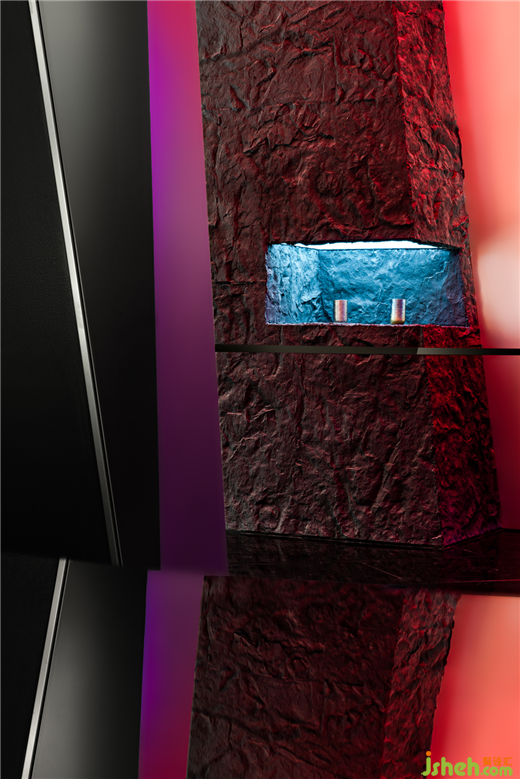 关于矿洞内在形式前期进行了多轮实验,最终决定在造型上强化钛的金属刚硬属性。顿挫曲折,大斧劈皴,将矿洞几何化,块面解构切分。此法处理不仅来源于设计直觉,亦有东西方艺术共性的来源。外部看这个由倾斜的造型和物体所重组的空间宇宙,展厅设计造型随机而夸张,模糊了常规顶立面的关系。但其尺度是基于功能准确而精密的。
