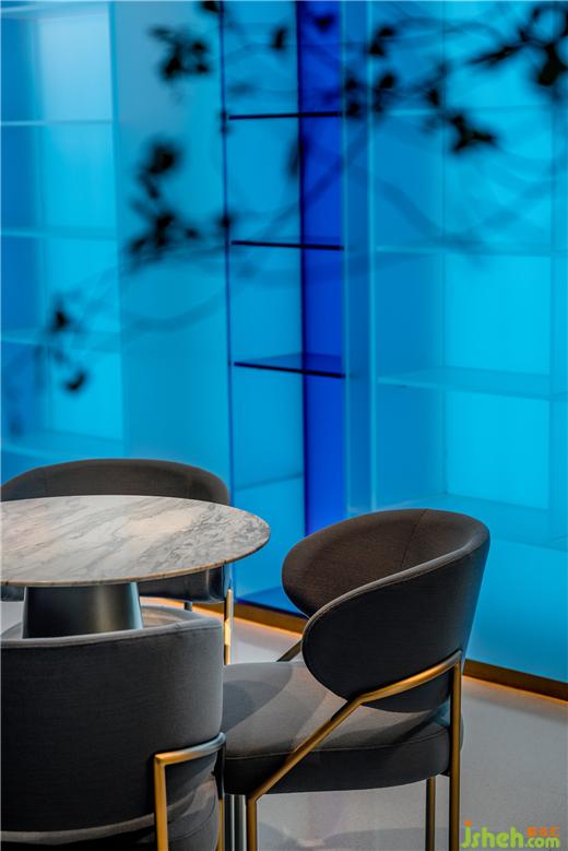 具象的功能区及产品为“石”,大量错叠穿插的弧线与几何设计定义“水”,消费者由门厅进入、溯洄其中体验消费场景而成“潮”,整个空间以设计元素及区域优化刻画出“吐故纳新”的深意。由一层丰富的体验场景转入二层,健康设计以能量医学等现代科技主导的诊疗、康养、沙龙等健康服务逐一呈现。