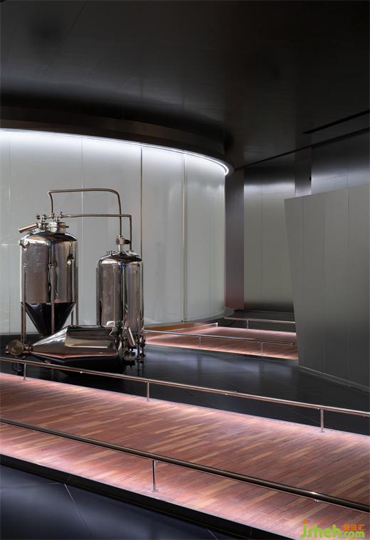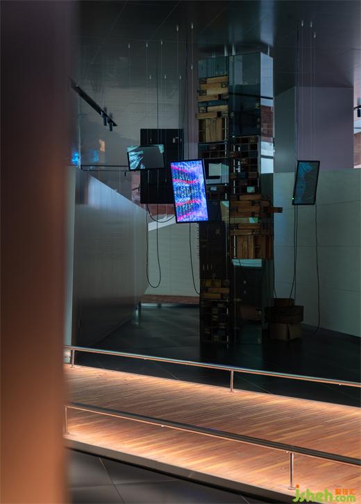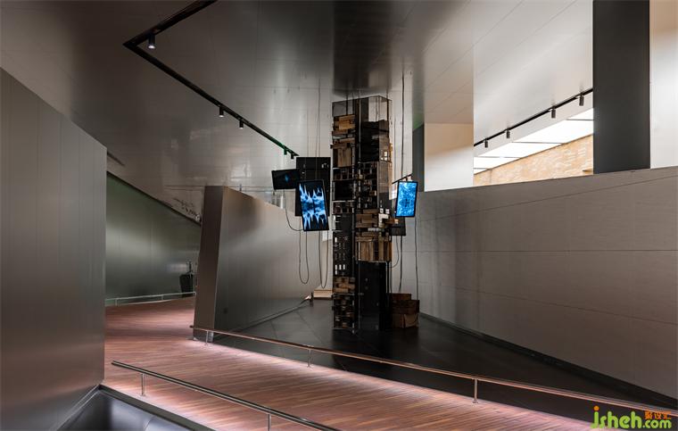 黑色镜面与不锈钢天花打造出空灵质感,使人沉浸其中,恍若进入另一番探险。参观大厅设计叠错的折线、转换的视角在多维线性空间展开。数字化生产工艺实景和智能化显屏橱窗二次折射元宇宙的光影,辉映着绵延在时空中的品牌精神。