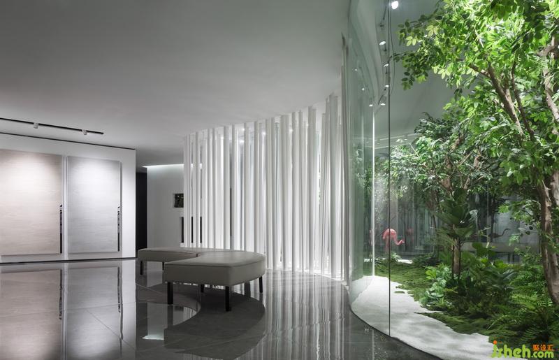 本项目设计创意源于大自然的美,草木山林,高山流水,让人置身于自然的怀抱,空间里有自然的呼吸,环绕的景致,缝隙之间的绿,内外交叠映射的景,光影与时间的流动,树叶的触感,仿佛还有树梢清唱的鸟鸣,思与境偕......
