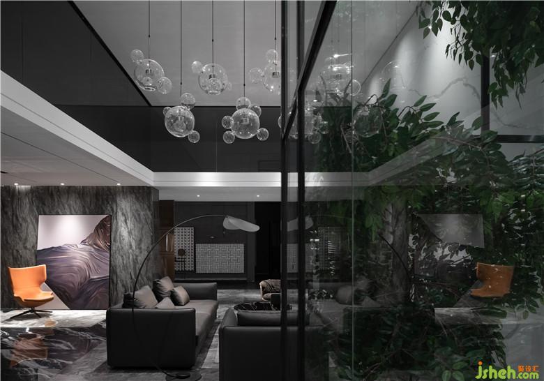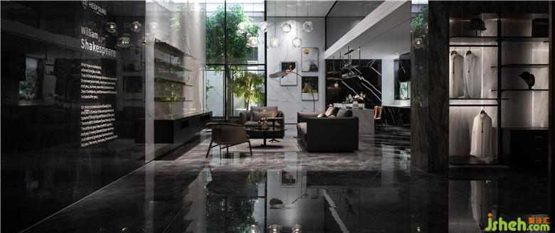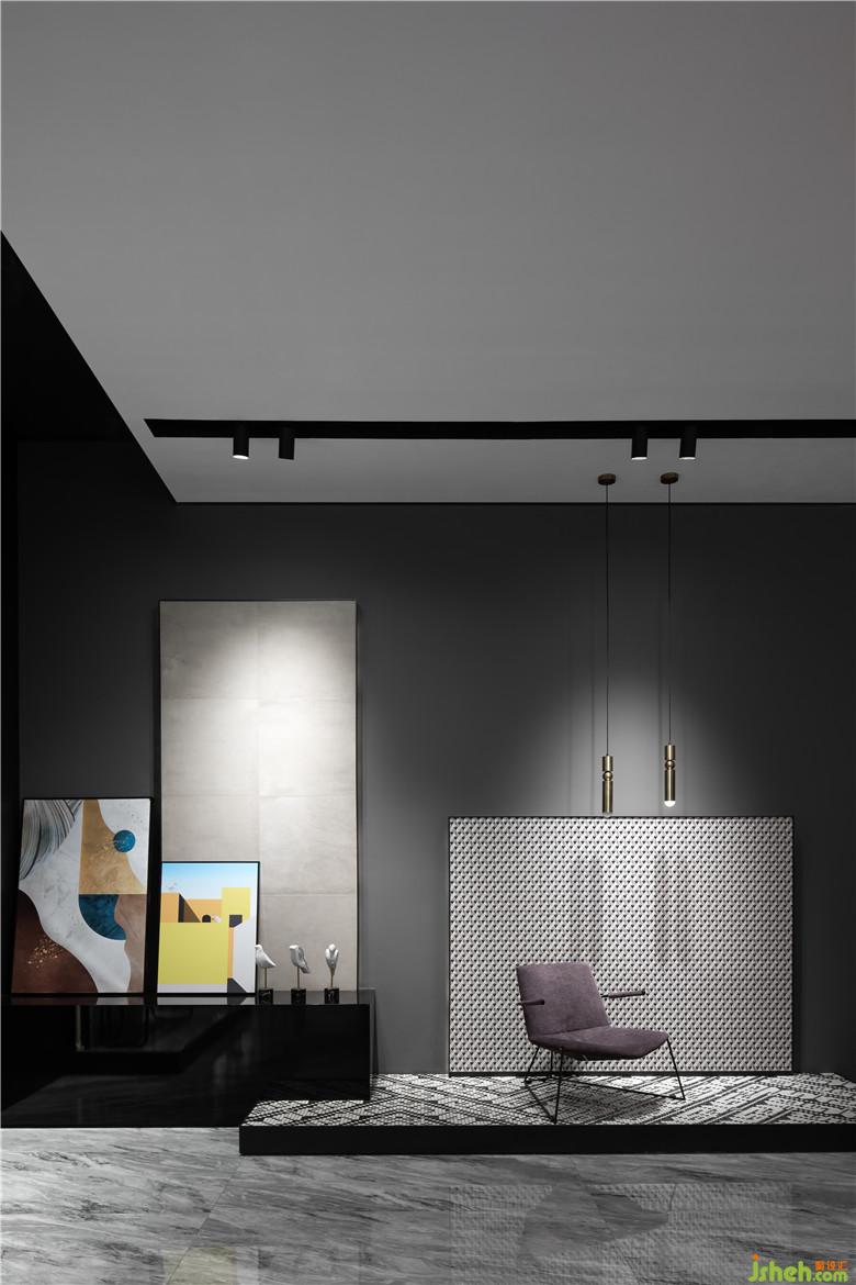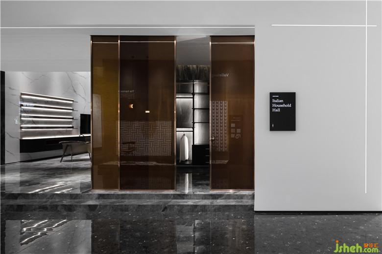选材区以产品展示为核心,通过疏密有致的几何体块序列进行叙事。非对称空间是在空间维度上寻找平衡点,是相对复杂且丰富的,空间体量和疏密有致的几何体块之间的关系形成了空间独有的艺术形态,在细节处理上,对材料的对缝,收边,比例都经过细致的推敲和设计和精磨精切。追求品质,而这就是建筑对使用者体现出的尊重感。黄铜等金属材质低调地出现在空间中,使得室内的宁静氛围多了些许丰富的变化。而木材与石材的运用,亦使空间多了些温润及细致的表达。
