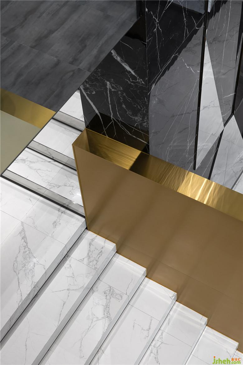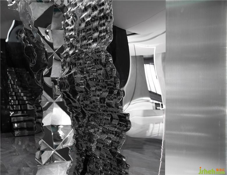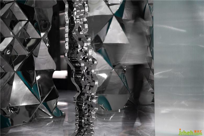 拾阶而上,以“时间流逝”为主题的不锈钢峡谷装置,将空间线索由未来拉回到现在。全手工立体打磨的细节肌理贴合了品牌对极致工艺的追求。三个样板间围绕中空区呈环状分布,以日常人居尺度进行定制产品植入,高端质感的场景体验中人与物达至和谐。