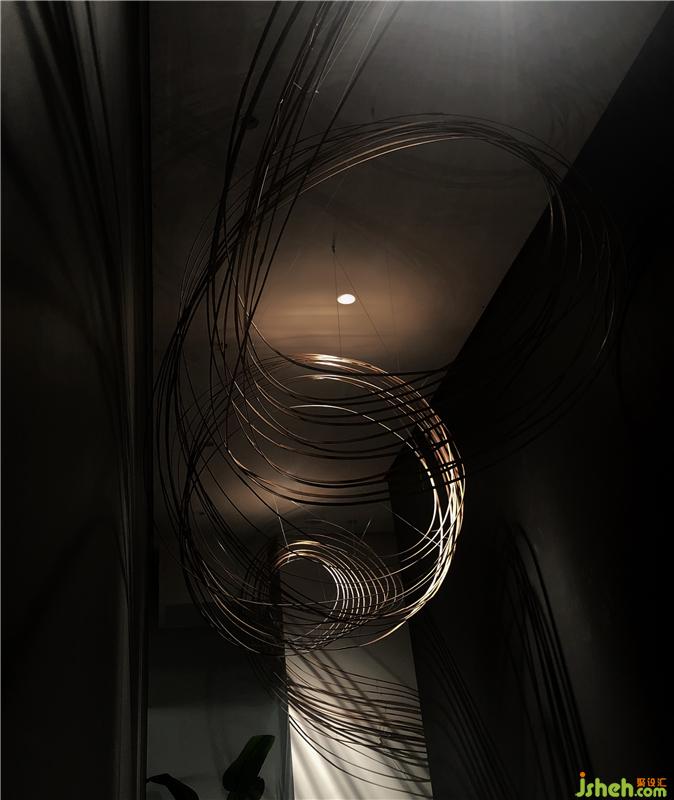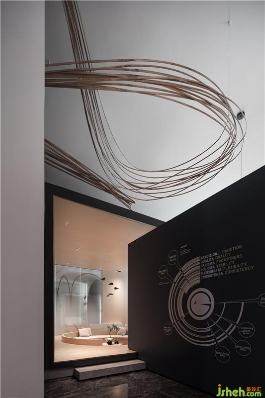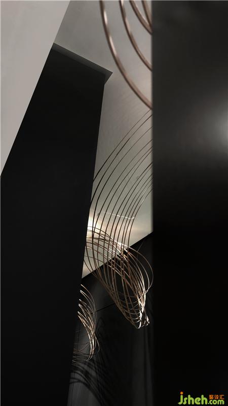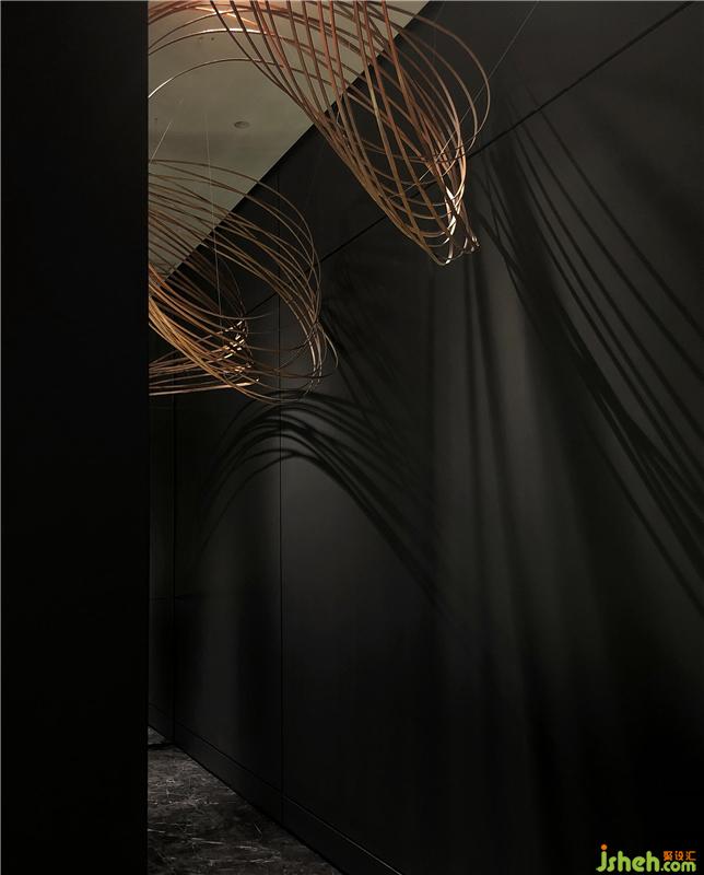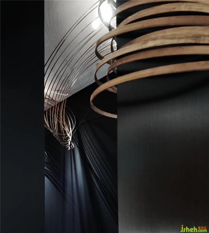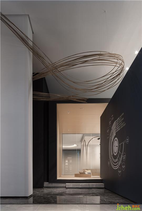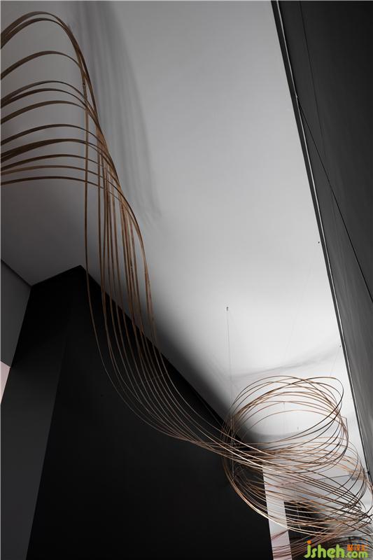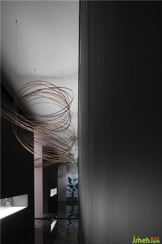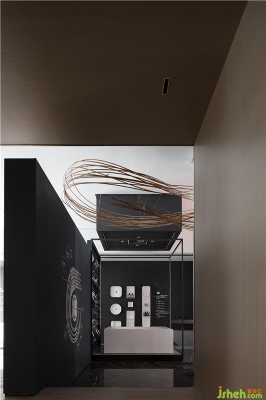 视觉引导观者从物质结构转换成思考和联想模式,也是设计师对于物质空间如何深入转化的再次探讨,线索从入口开始穿过黑色长廊,几经辗转,结束于时空之中,这种元素极大程度的构建了空间,他们可以足够大,使人迷失,也足够小,使人见己佛山展厅设计。