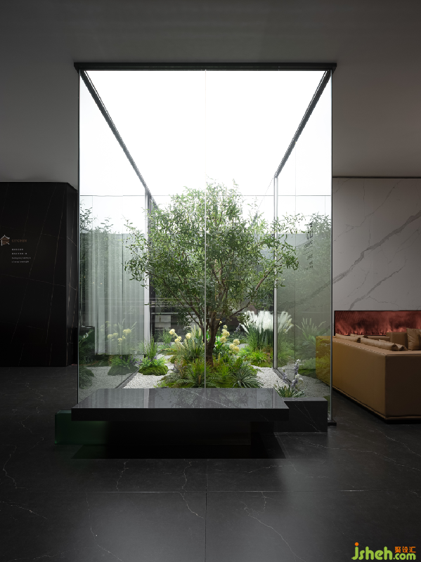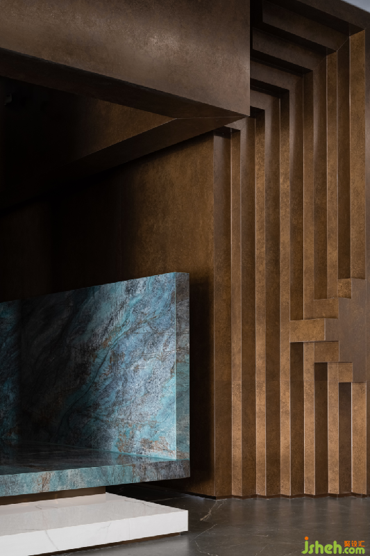 自然的色彩过渡将人们的视觉平移至室外的天然风光,运用光线的变化,在质朴中呈现出永恒和典雅。环顾空间整体布局,以半隔断式的设计手法巧妙置景,传递更加开放、自由、温润的氛围,随着步入者的位置变换与视线流转,不同角落皆可自成一幅画卷佛山岩板展厅设计。