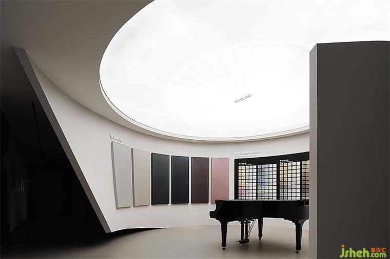 在圆形选材区的核心位置,耸立着一台气质高雅、装饰华丽的钢琴。它宛如一位音乐的守护者,散发出淡淡的木香。钢琴的黑白键盘与周围丰富多彩的色彩相互映衬,总部展厅设计共同演绎着音乐与色彩的交互魅力。