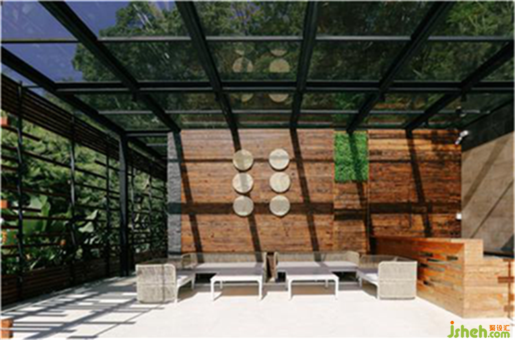 ∆泳池酒吧设计大气通透,空木头疏密有致、错落有序