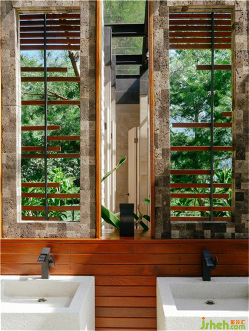 VILLA房外观以大面石材搭配木皮、木栅加上植物点缀,俐落干净的线条体现简约工艺美学。木作格栅与垂直线条主次分明、疏密有致、错落有序。浑厚的大器中保留原始的粗犷感,延续绿色意象,倚林而居。每个类型的房型内部布置、材料的选择、色调以及感动的注入的都是经过精细的处理,以体现原汁原味的温度触感,大部分的灯具以及家具、饰品都是由印尼运回,最传统的技艺手工制作而成。