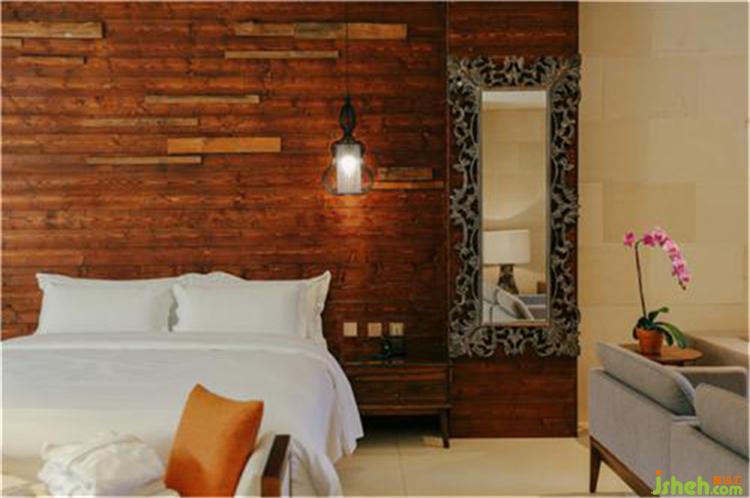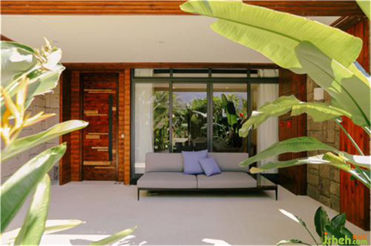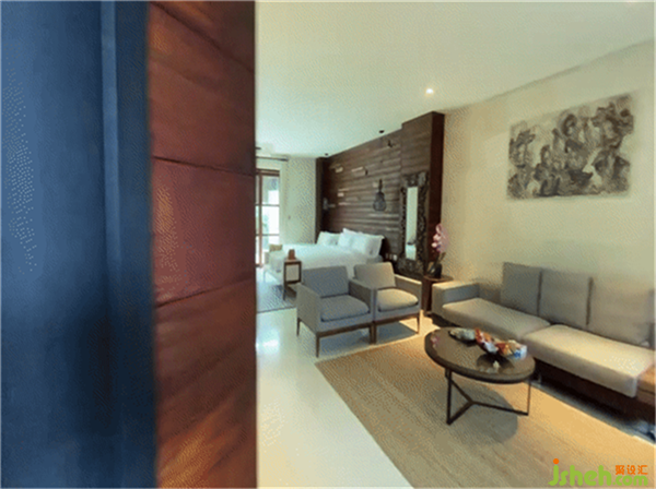 沿着绿荫走到私人Villa,宛如走进了与世隔绝的绿意世界, 隐密度极佳,伴随着开放式空间。房间色调以暖色系打造,搭配深色质感木头,营造简单轻盈、舒适的个人空间 。酒店设计