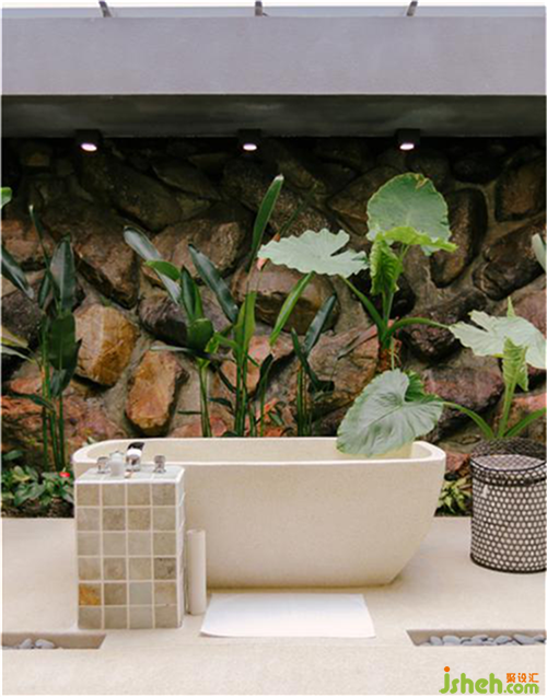 ∆印尼运回的石子浴缸,两侧种植精心设计的植栽景观