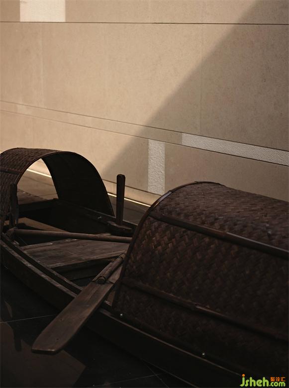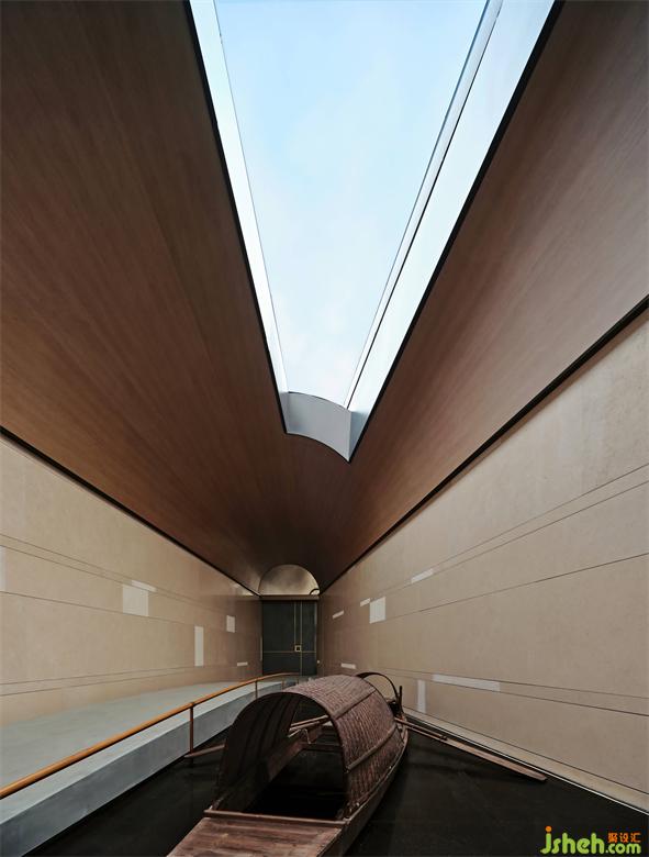 转身入门,微微拱起的栈桥,一叶乌篷船停泊在侧。晴天时的光线从穹顶的天窗倾泻而下,随时间印刻在石板之上。