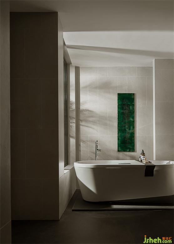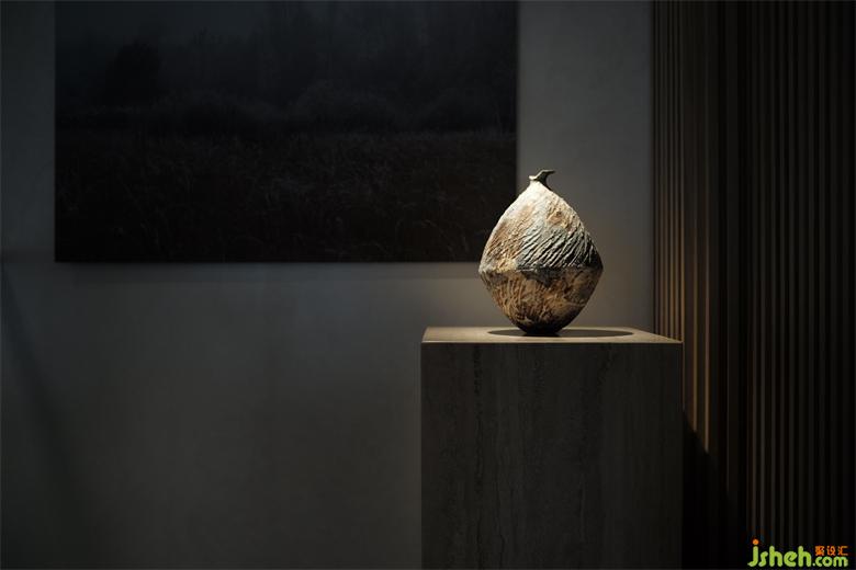有限的二层空间通过设计被充分精巧地规划为次卧与次卫。经过走廊,坡屋面下的次卧以榻榻米作为主要活动空间,结合蔺草席、木质长桌、棉麻床品与静谧的暖色灯光,万科样板房设计呈现可居、可学、可玩的丰富属性——家的活力和温馨便在于此。