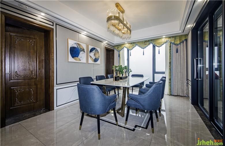 整体空间的平整对称既凸显了新中式的秩序美,错落有致中,渗透着细部别有的精致。正好符合业主”既喜欢中式传统文化,但又对现代时尚潮流较为追崇”的生活态度,两者碰撞衍生出现代时尚的中式氛围!