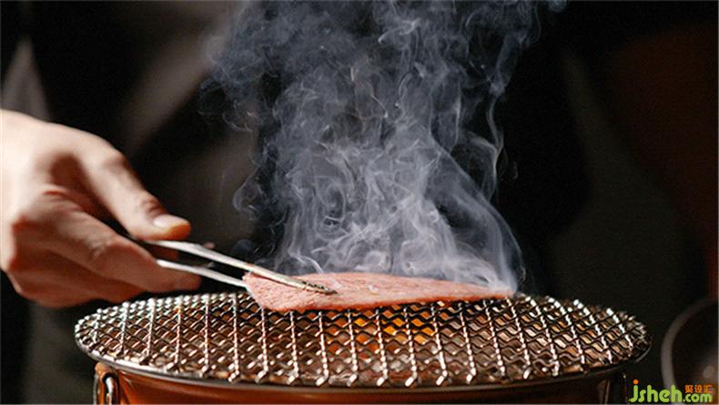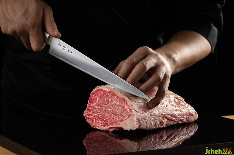 一块漆黑的墙面衔接玻璃幕墙,没有任何花俏的图案或特殊的纹理装饰,只有金铜色的店名提醒来访者,火烧钢板背后藏着整个美味和牛烧肉世界。