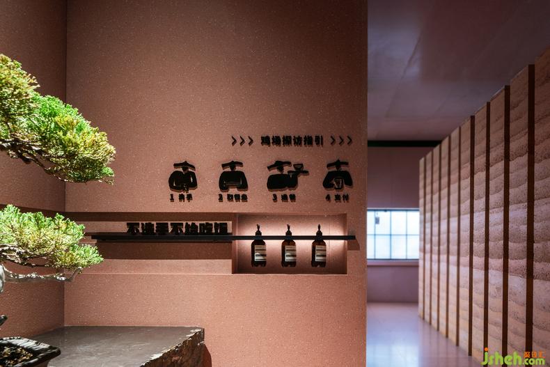 源自于土地的色彩,提炼为低饱和度的用色方案,作用于土、木、石、棉、麻等天然材质的界面,与呼应生态、有机的品牌核心一拍即合。整体的色彩以土壤红为主,并且穿插有标志性的老乡鸡符号元素,核心设计灵感通过琳琅满目的大字报文字排列,营造热闹非凡的碎片化现代空间。