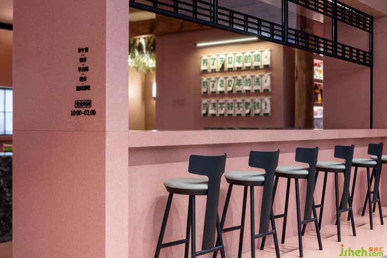 空间的整体设计加重了视觉化处理,榫卯结构的老木头,稻草装置倒置其间,餐厅设计穿插动态的电子屏和“国潮”感十足的趣味插画,构成异质的集合体,共同完成关于稻食文化的一场空间叙事,向都市人传达朴素简单的中国农耕理念