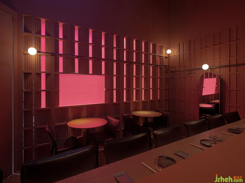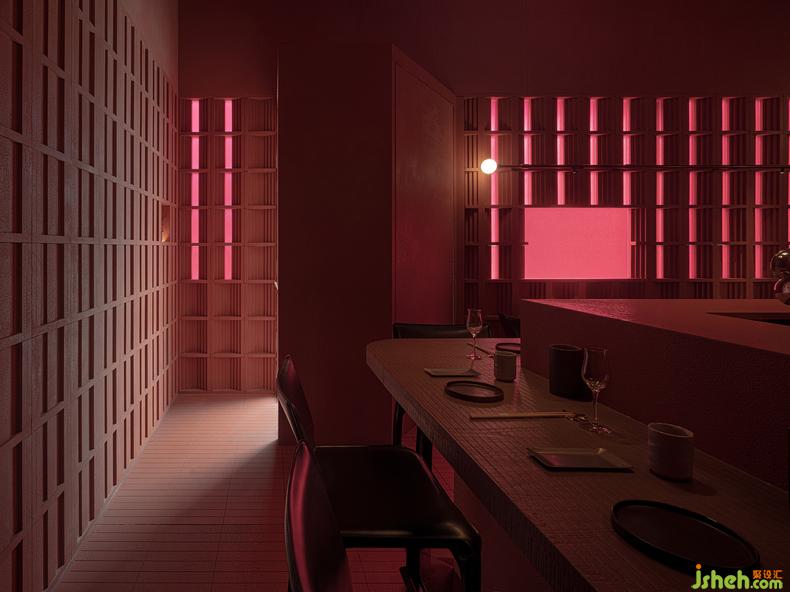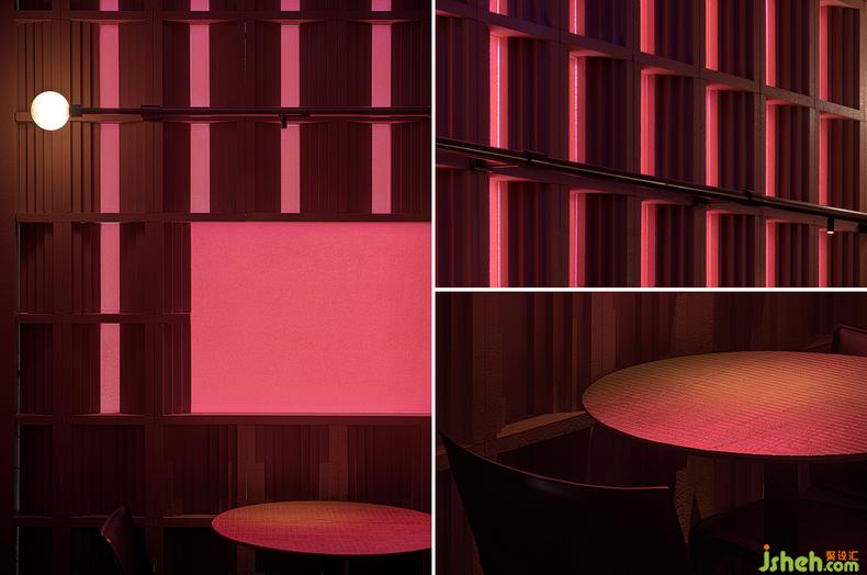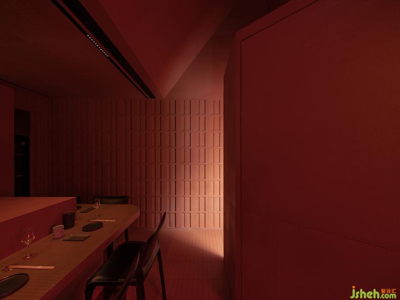 砖红色的陶土材质充满了全面包容的精神,餐厅设计与排布而成的独特纹路、不规则而隐秘的入口、暧昧的灯光一同,确保着鲜艳的橱窗不会被黑暗夺去光彩。它足够小,所以在每每深夜降临时,才能让往来的人们,成为属于这里的一部分。这样的夜晚注定成为承载精神的夜间理想国,每一个到访的人们都倾注了自己的能量。小小的空间如同囊括了人生百态,而拥有故事和酒的人们经常聚在一起,一杯胜千言;也可以独自一人在繁华过后静享杯中美酒,注定有别于往常。愿在纷繁城市间行走,兆兆岁月无嗟叹,人人心中一束光。