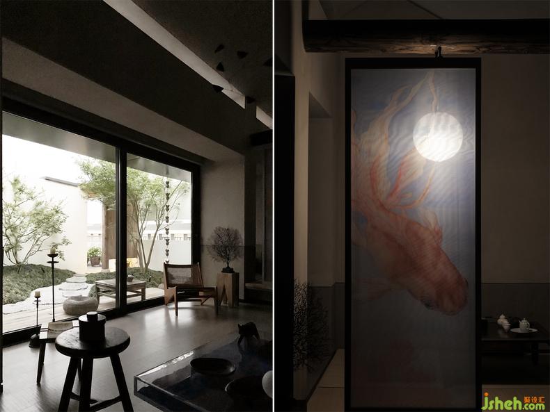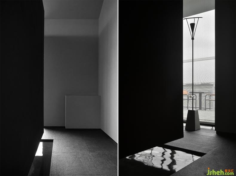 盒子内部的亭构成一个微缩美术馆,每次展出一张画作。与传统“亭”的概念有所不同,酒店设计它是座摒弃外部一切喧嚣的亭,旨在制造精神层面上的绝对静谧。目所能及的灰度皆向此处流动,直至抵达空间内部,当灰度达到饱和,使人愈发专注于眼前唯一的、由艺术所构成的“景”。