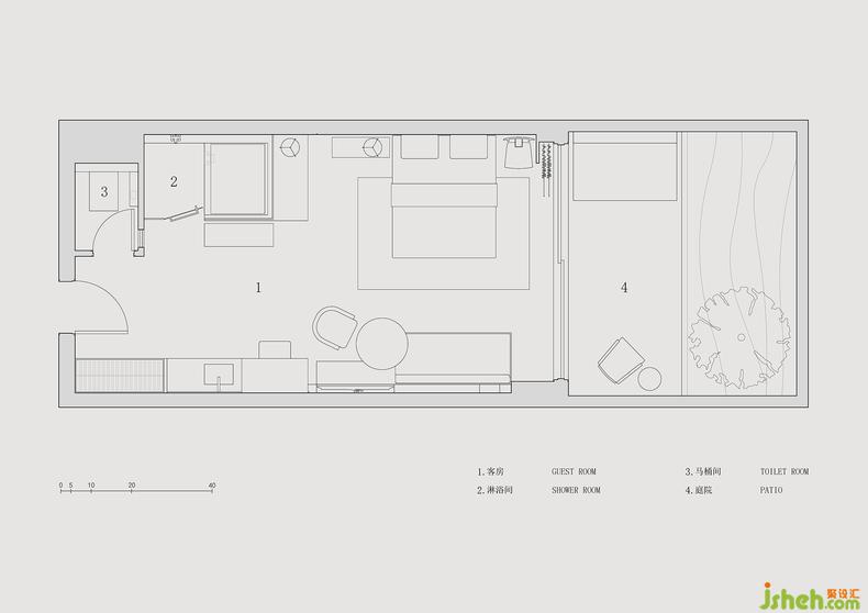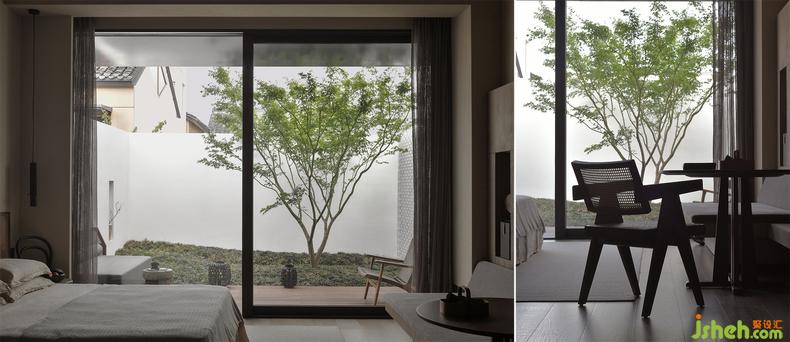 木材的清香弥漫在空间之中,物件本身的美感被极致地放大,酒店设计内敛而温厚,散发出一种超越日常却安抚日常的情绪。白天日影斜入,空间感受顺时而变;夜间自然光消减,重重叠影应之显现。正如谷崎润一郎在《阴翳礼赞》中写道:“美,不存在于物体之中,而存在于物与物产生的阴翳的波纹和明暗之中。”
