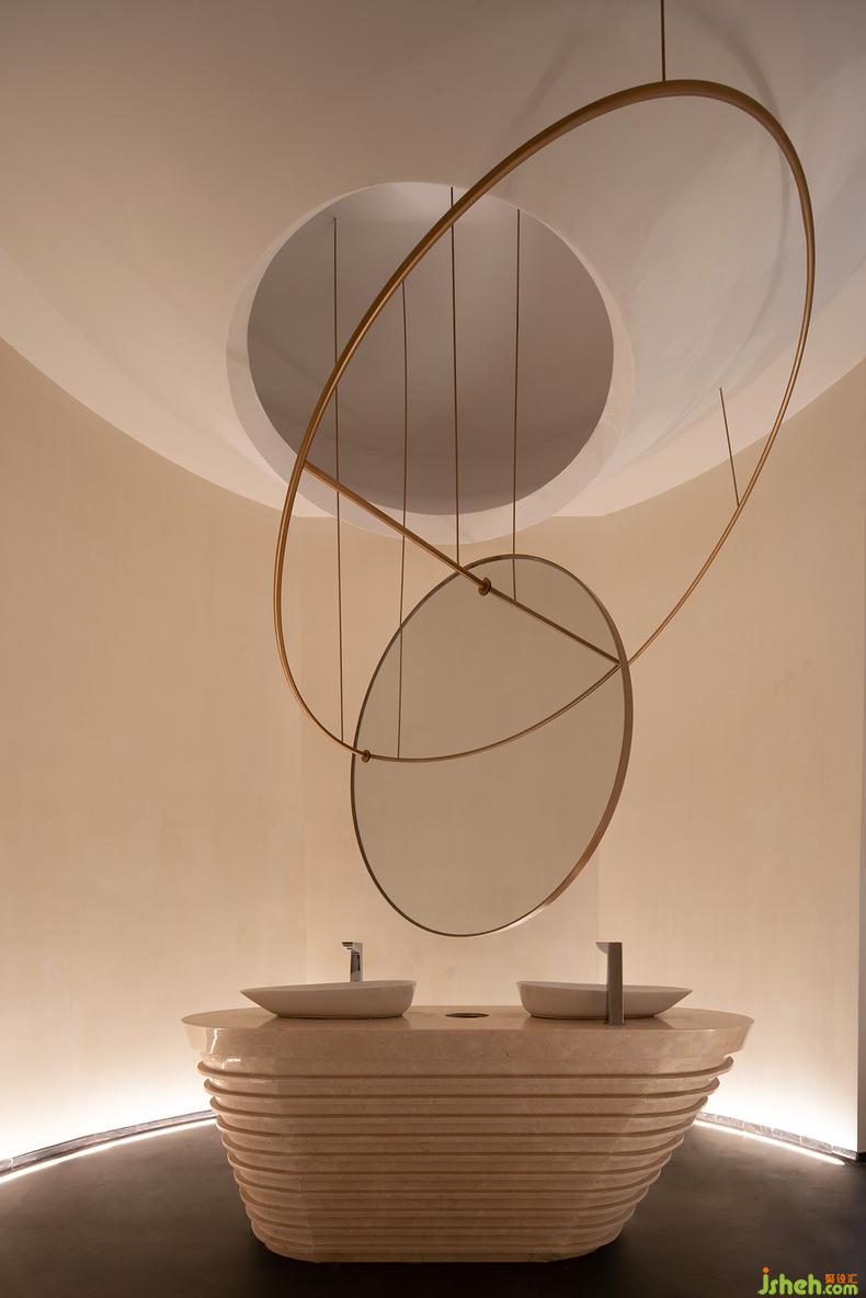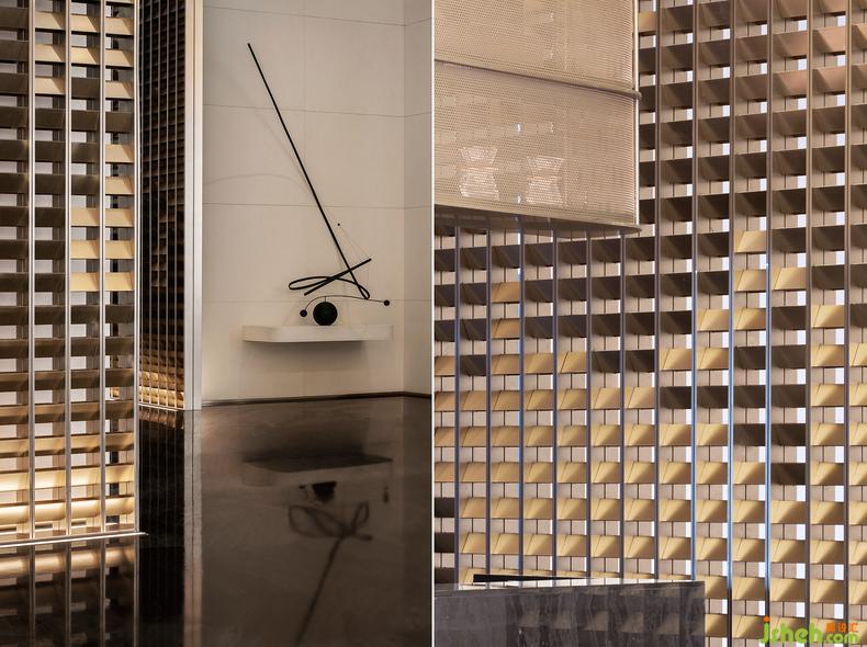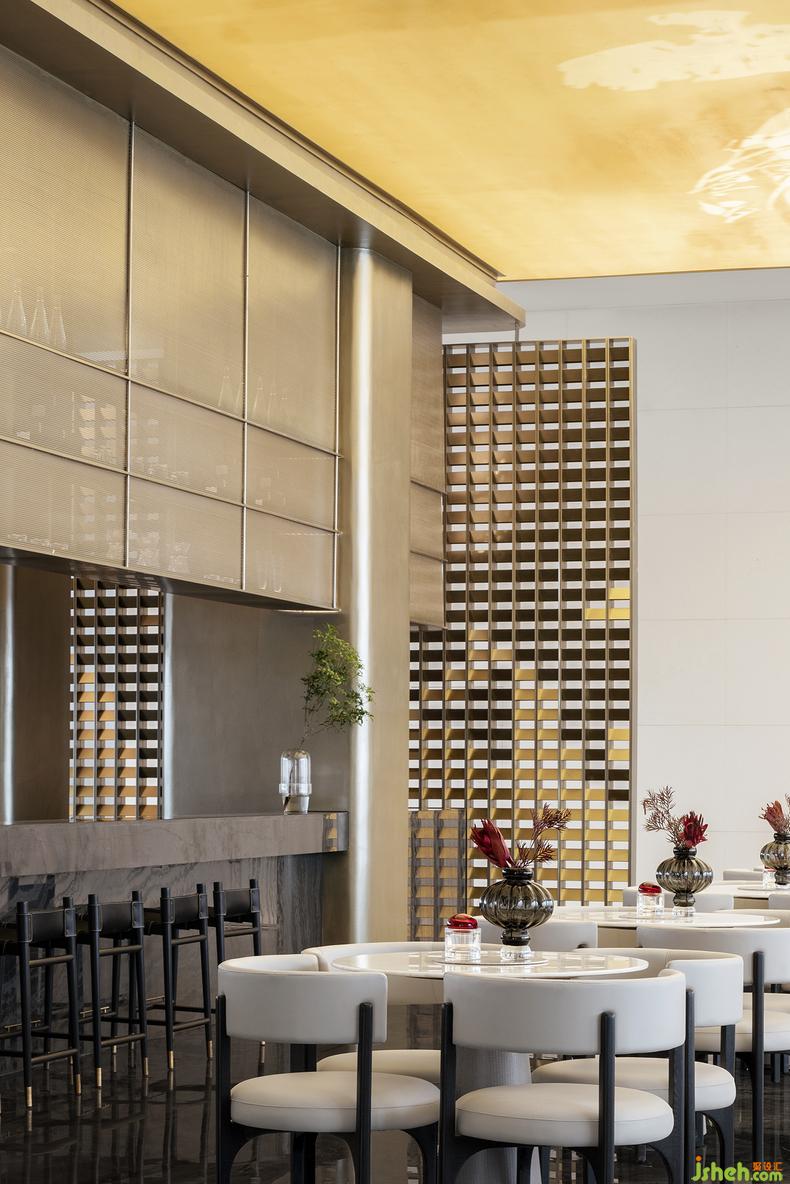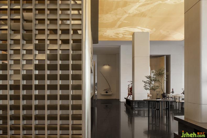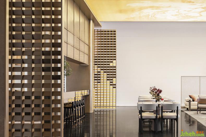 书吧阅读区则延续了这股安静的力量,月蓝色墙饰面和地毯,搭配浅色饰面与家具,装修设计间或看到红色金属帘幕的背景与沙金色墙裙饰面的光影,恰如大漠中的白日、黄昏与月夜之交替,让人能一室看尽西域风光。