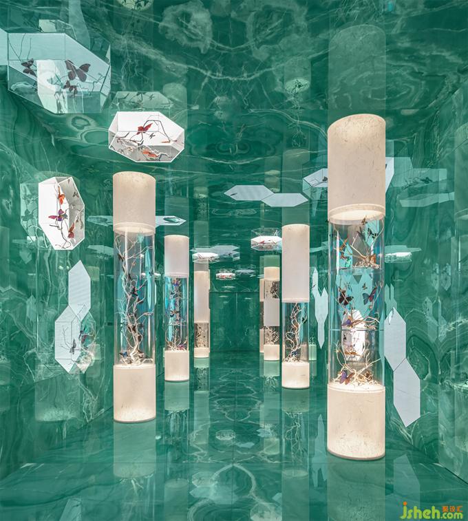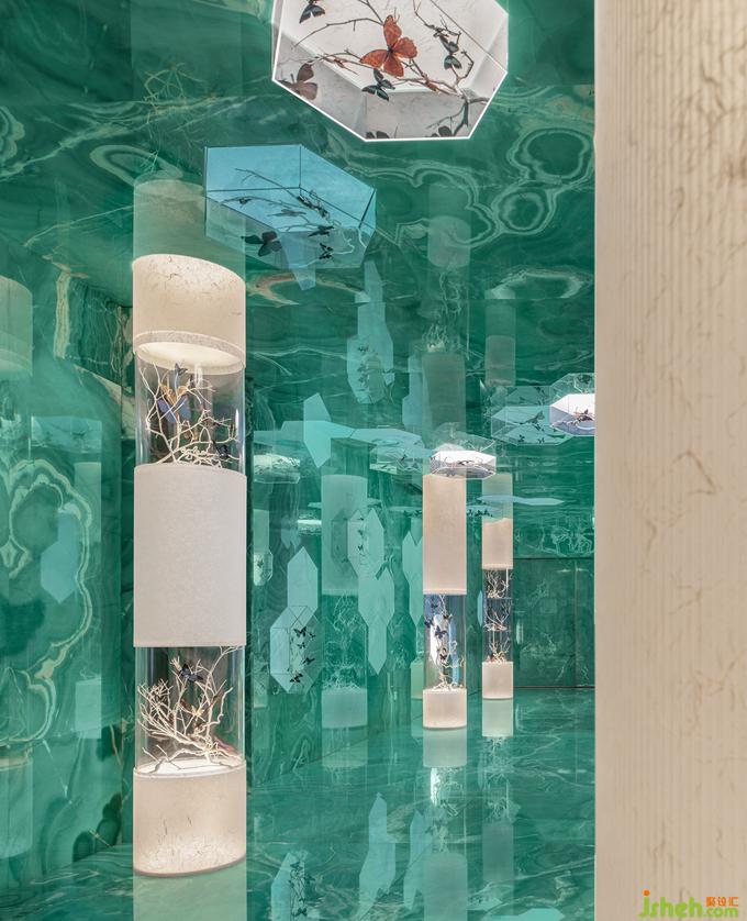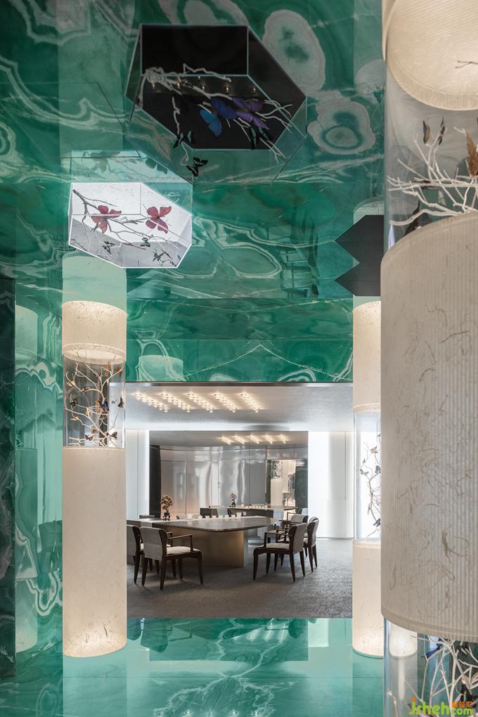 杭州餐厅设计项目涵盖入口通道、接待茶区、用餐大厅以及不同主题基调的包房系列,以环形的动线贯穿整层的体验闭环。惯看现代都市的倍速机械加工,电梯厅花园以变幻流动的光影包裹自然手作的精妙与单纯,餐厅设计绿玉石、玻璃与蝴蝶环绕的沉浸式超现实秘境,带来推门而入的感观惊喜和情绪转换,与楼宇林立的CBD背景和所在建筑的办公属性既是形式上的割裂又互为内容的补充。