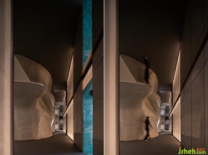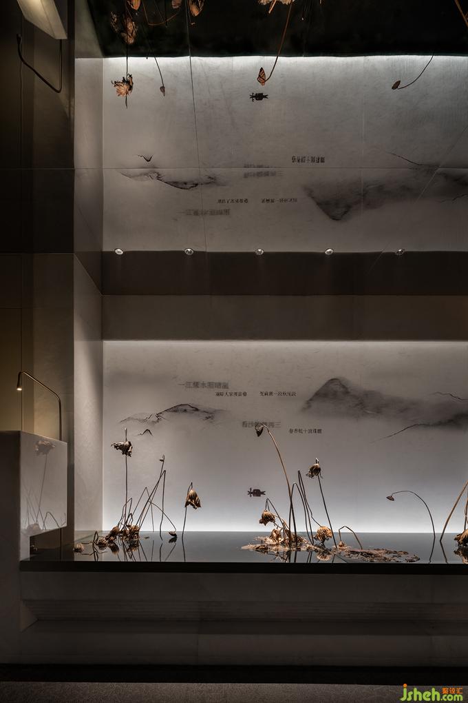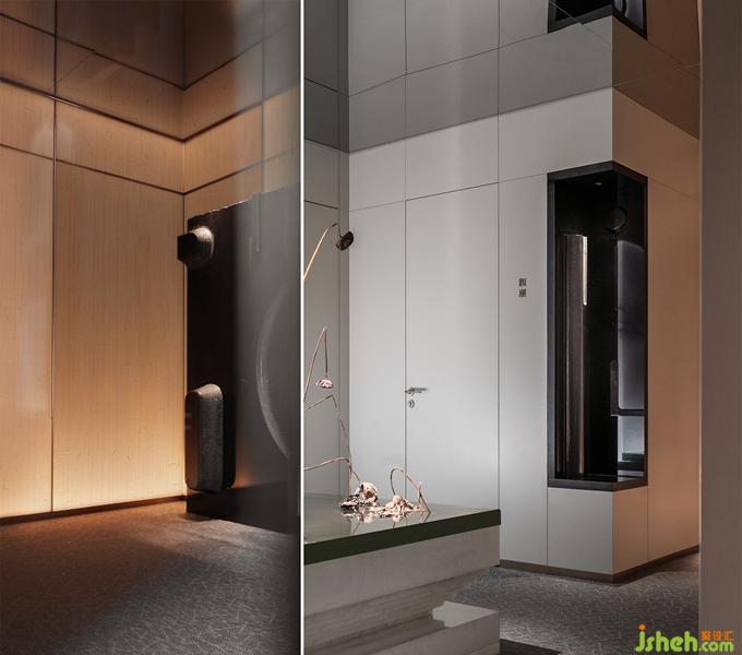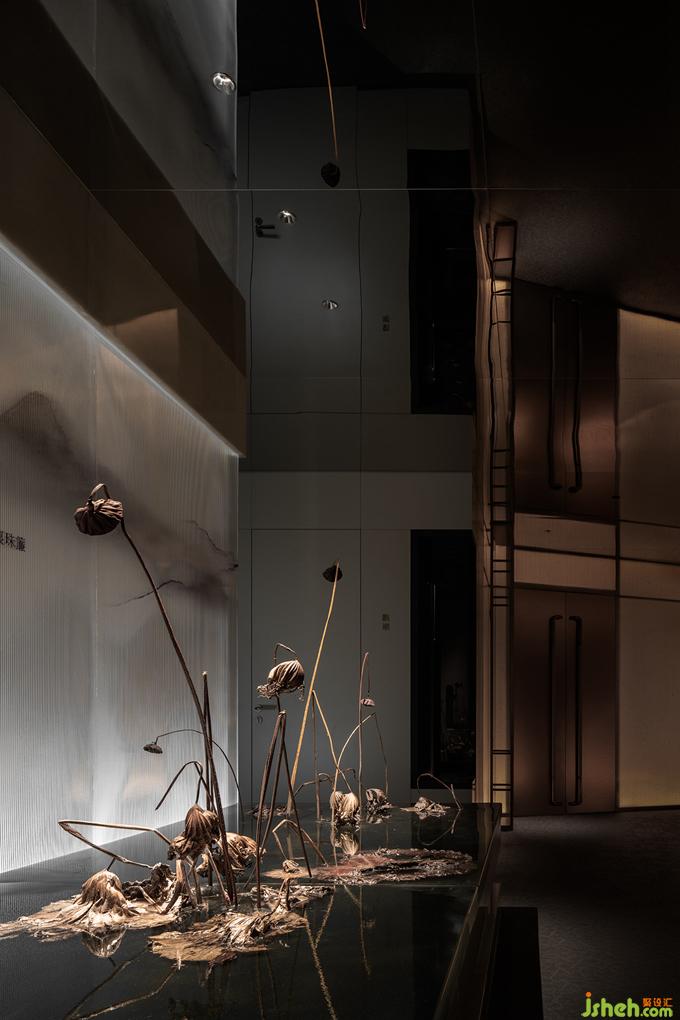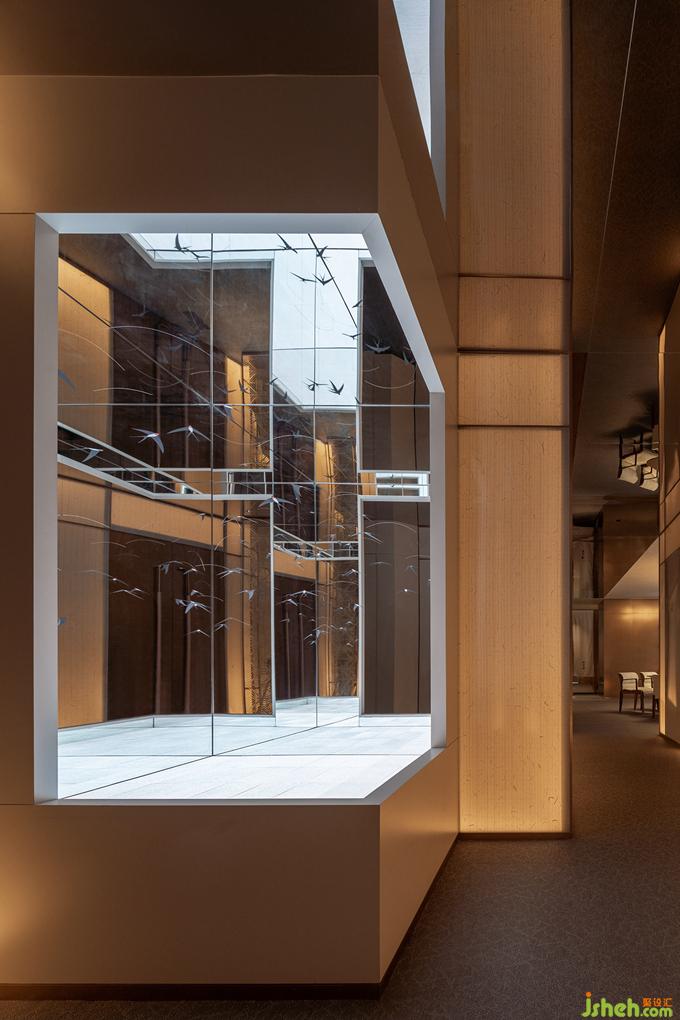 在“江南意象”的空间表现中,利用线条、色彩、形态、肌理等要素,对具有鲜明文化符号意义的雪、水、桥、栏等景致与风物,进行拆解集合并加以当代艺术的注脚,依循包间各自的结构与采光条件,杭州餐厅设计营造动态更迭的“剧幕”场景和丰富层次的心境感知。藏于江南诗与水墨画中的物象在虚实有无之间缠绕穿插,原发境域与悖谬想象基于异质矛盾却又相反相成,终究进入崭新意境而“成其所是”