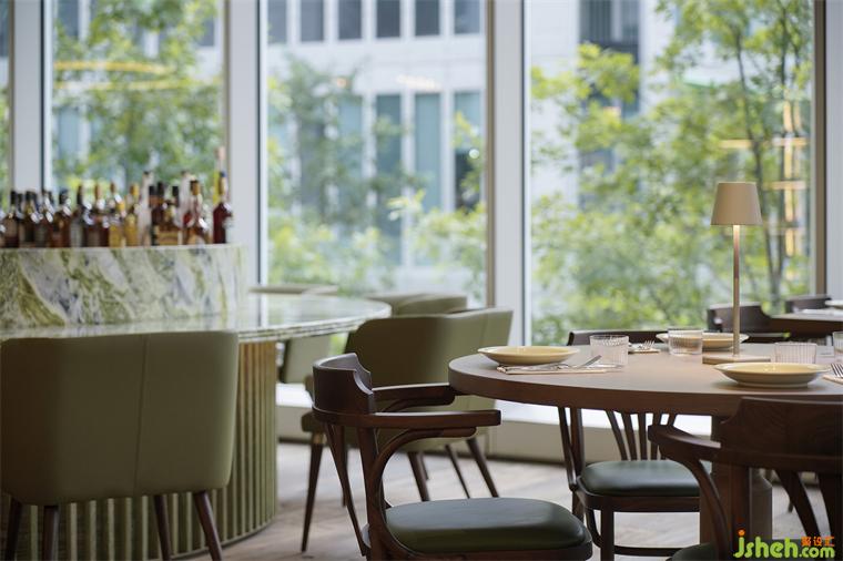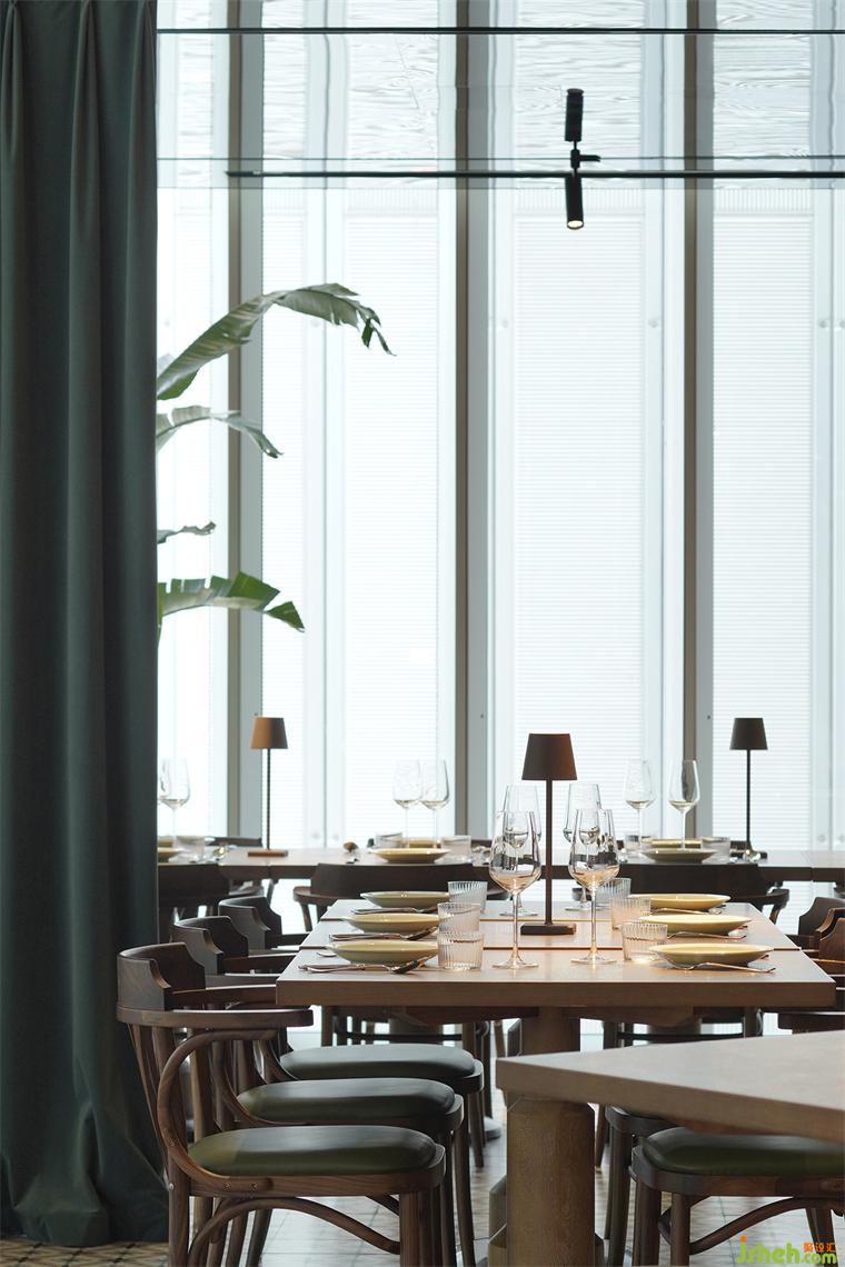宴会厅北面靠幕墙隔出一个“阳台”空间作为多功能厅附属休闲空间,尺度适宜,餐厅设计是个静静发呆,三五好友相约下午茶的理想角落。