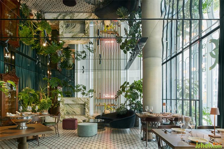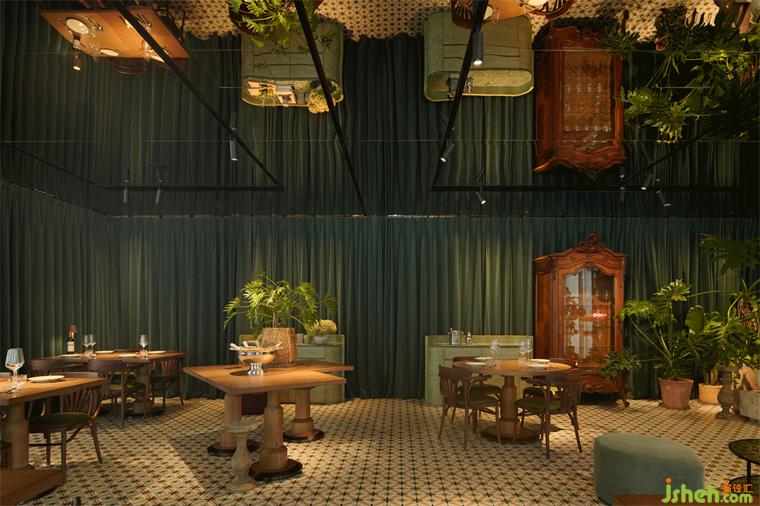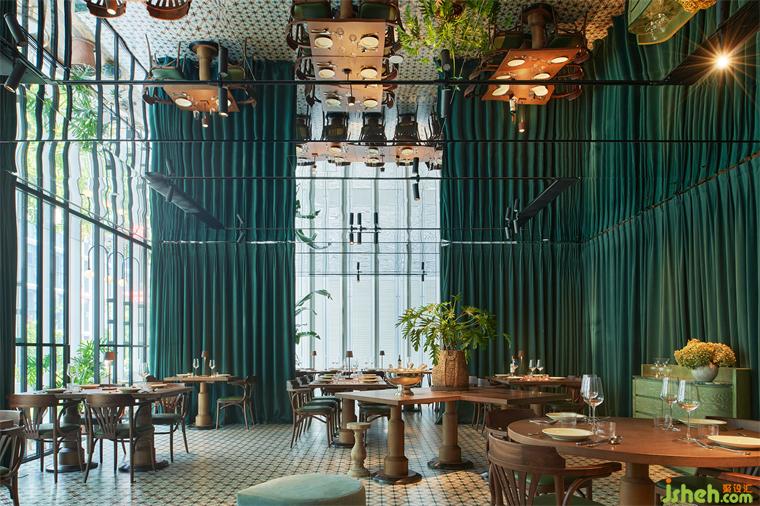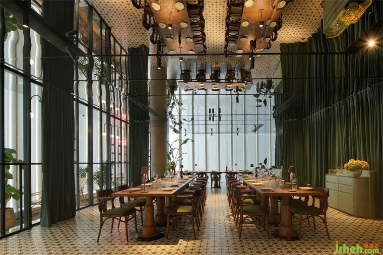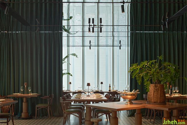 VIP宴会厅布满不同类型的花艺和植物,它是一个由玻璃屏风围合而成的通透盒子空间,餐厅设计内部由电动窗帘来分隔和切换空间以满足多种使用功能如就餐,宴会,发布会等等需求。
